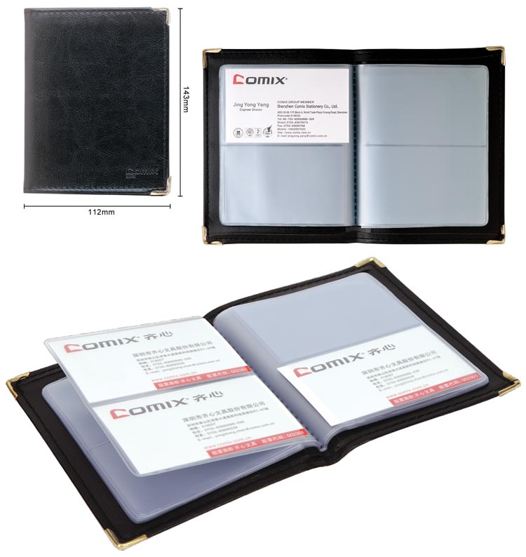 齐心(COMIX)NU64 便携式软皮名片册,可容纳64枚 ◆软皮封面手感舒适,金属护角防止磨损 ◆名片易分类保存,方便携带 ◆内页袋超透明、防静电处理