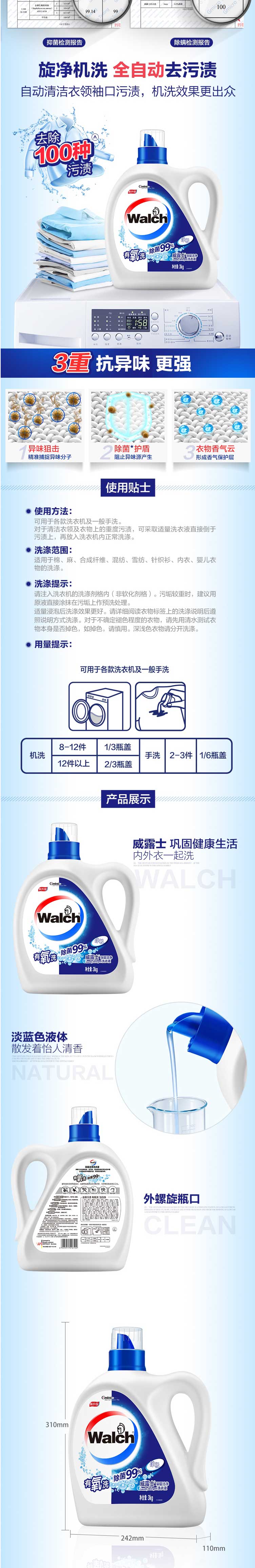 - 商品名称:威露士(Walch)深层洁净洗衣液 除菌除螨 机洗手洗 3kg/瓶