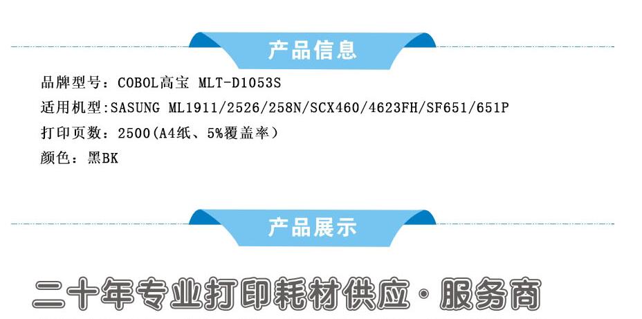 - 商品名称:COBOL高宝MLT-D1053S通用硒鼓