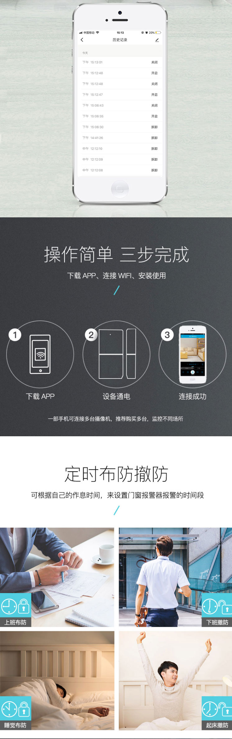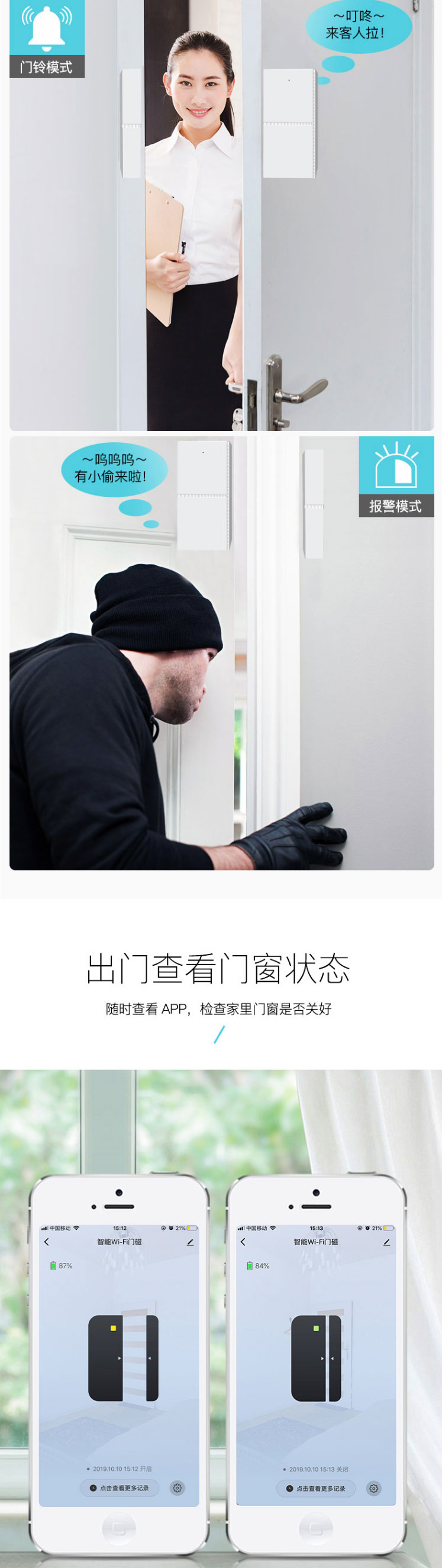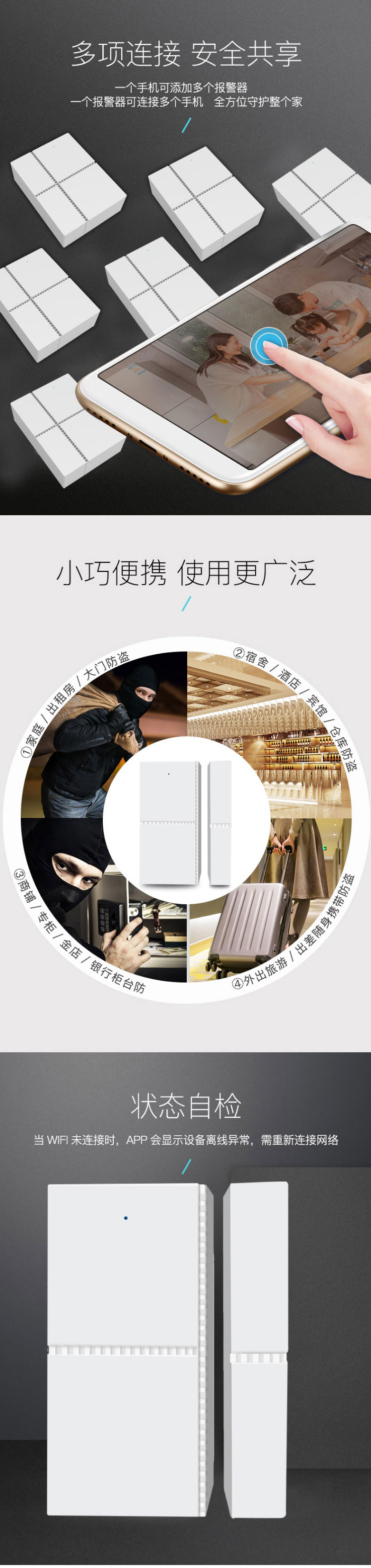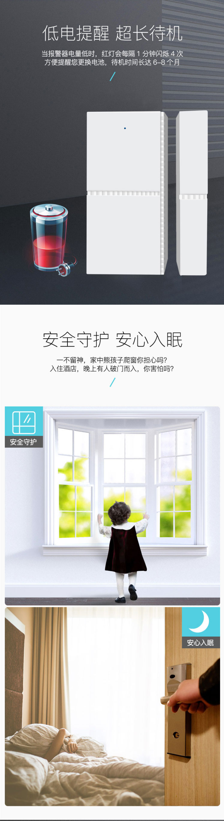 智能门窗报警器 定时布防撤防 APP远程操作 低电提醒超长待机