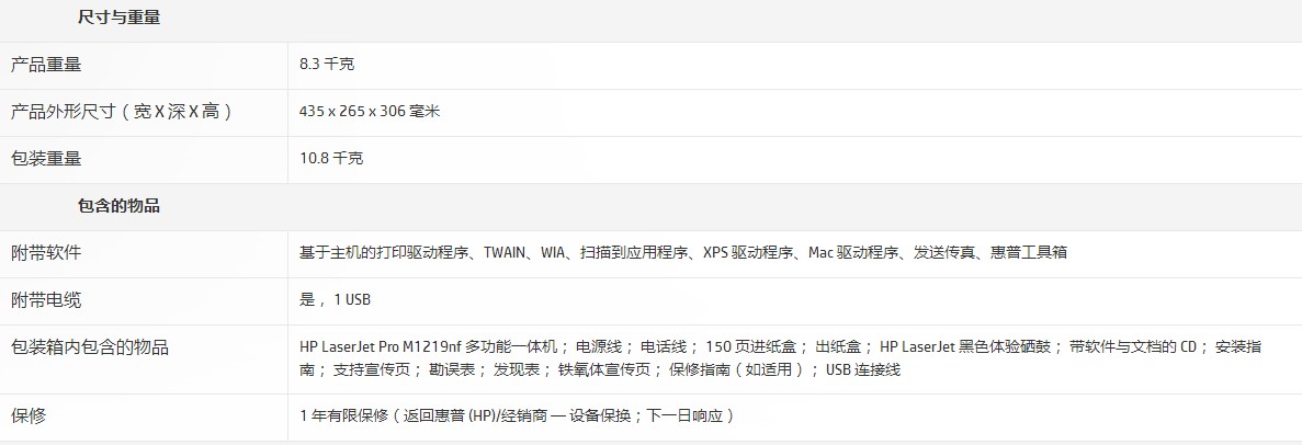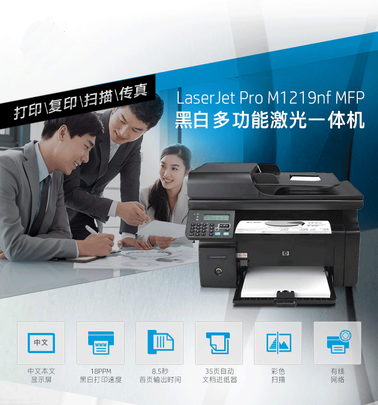 - 商品名称:惠普(HP)LaserJet Pro M1219nf 多功能激光一体机 (打印 复印 扫描 传真)