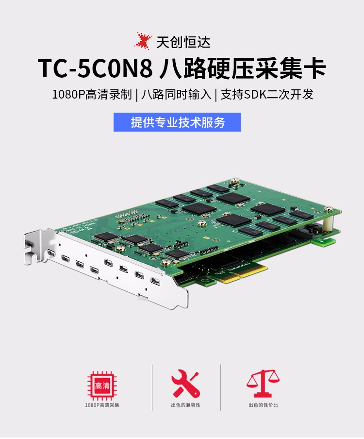 - 商品名称:天创恒达TC 5C0N8 HDMI高清采集卡 8路多路HDMI 内置pcie电脑图像视频直播采集卡 5C0N8 HDMI