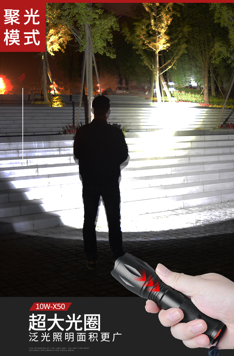 - 商品名称:Warsun沃尔森X50 T6强光变焦手电筒迷你可充电远射超亮探照灯LED户外骑行家用应急灯