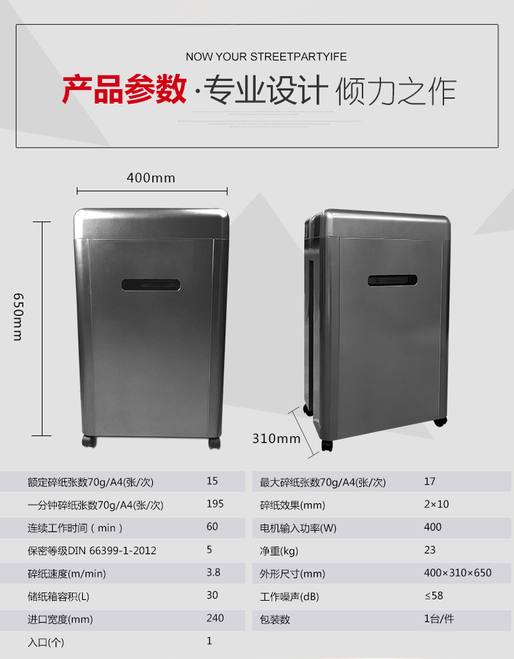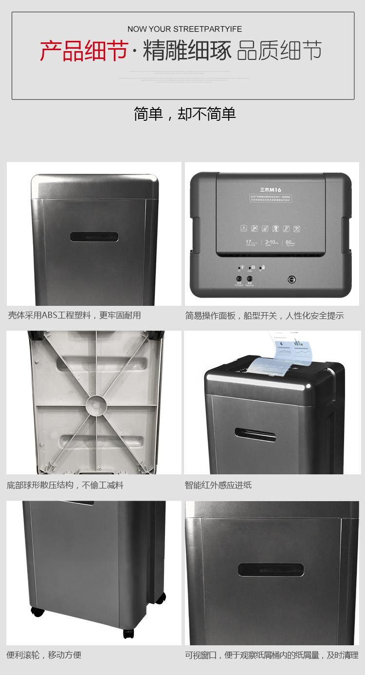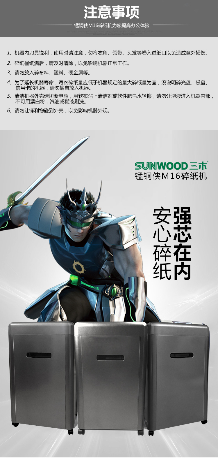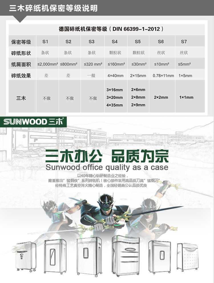 商品名称:三木(SUNWOOD)M16锰钢侠系列碎纸机 五级保密60分钟连续碎纸 每分钟可碎195张A4纸