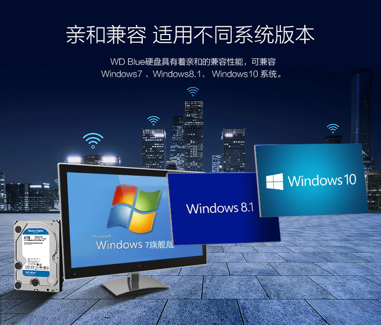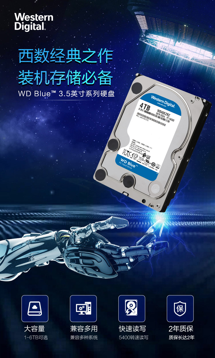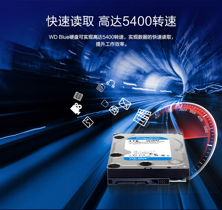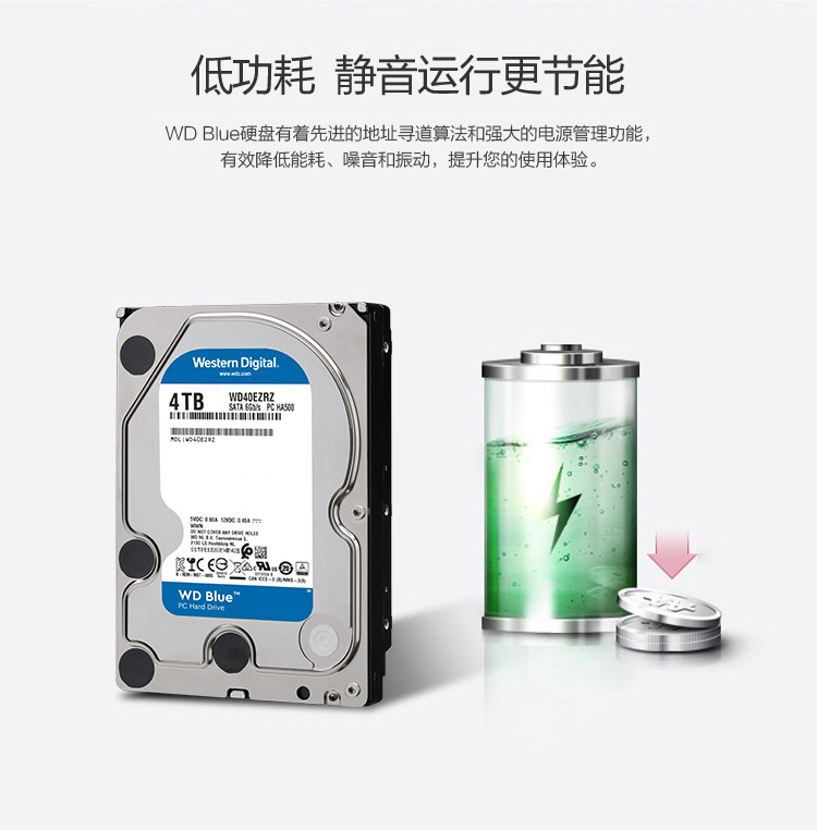 西部数据(WD)蓝盘 4TB SATA6Gb/s 64MB 台式机械硬盘(WD40EZRZ)