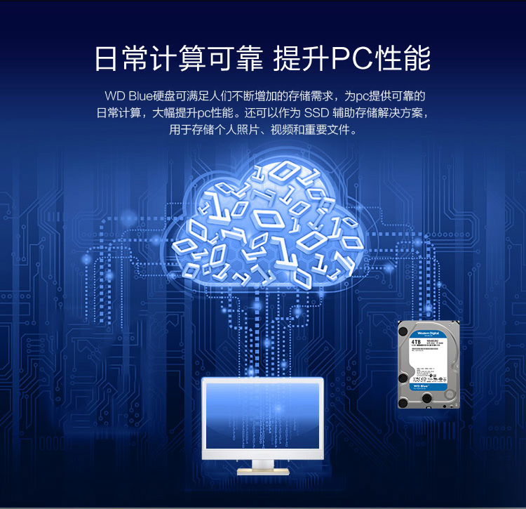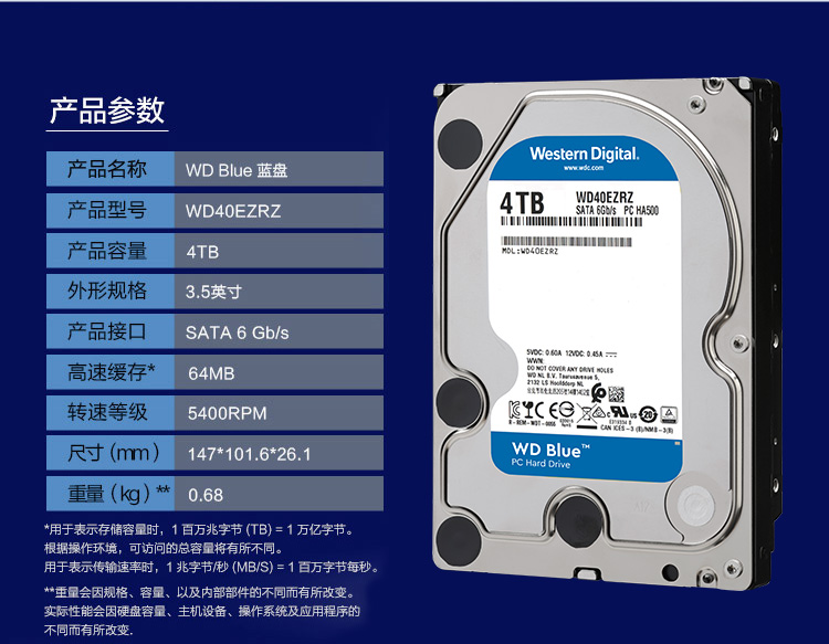 商品名称:西部数据(WD)蓝盘 4TB SATA6Gb/s 64MB 台式机械硬盘(WD40EZRZ)