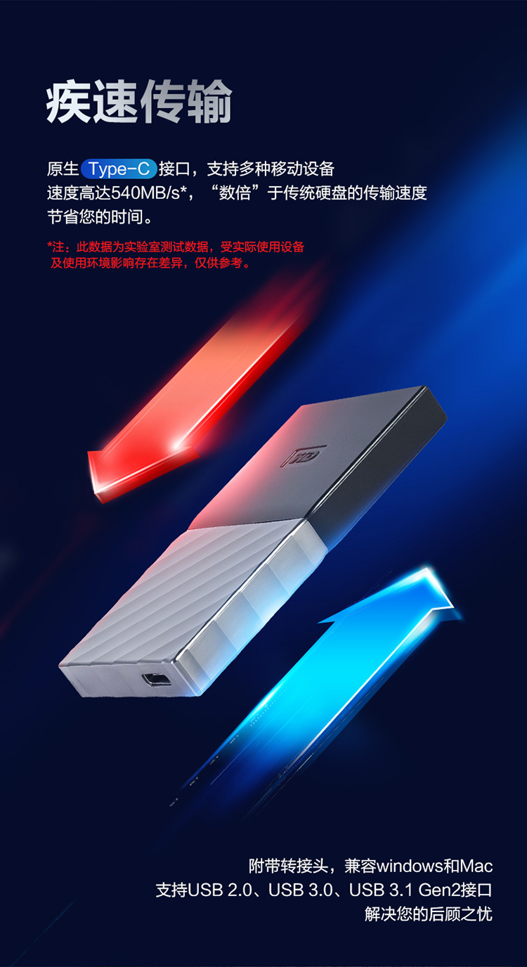 商品名称:西部数据(WD)1TB Type-C移动硬盘 固态(PSSD) My Passport SSD (小巧便携 高速传输)WDBKVX0010PSL