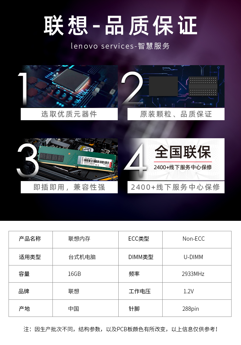 - 商品名称:联想(Lenovo)DDR4 2933 16GB 台式机内存