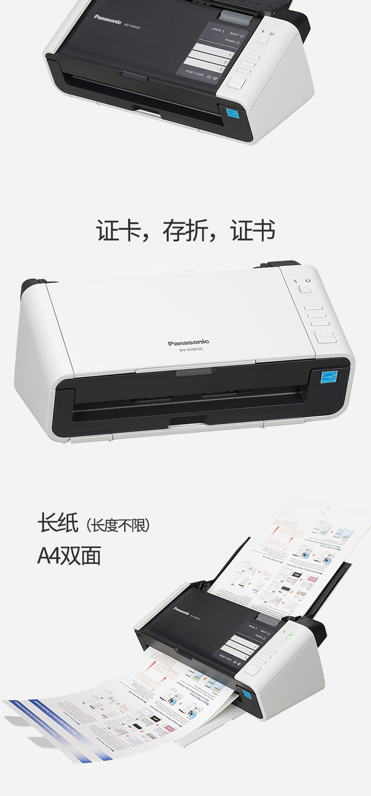 - 商品名称:松下KV-S1015C/S1037X/S1038 馈纸式高速扫描仪小型办公扫描连续双面彩色A4文档 KV-S1015C 【20页40面/分钟】1年保