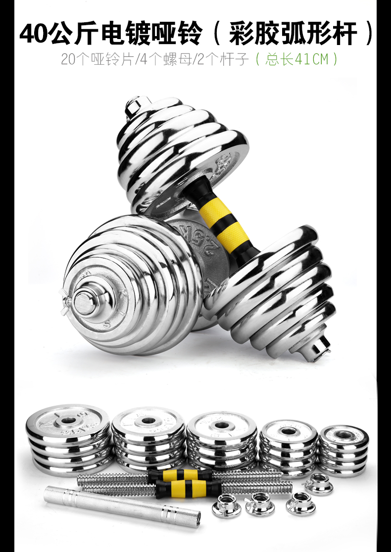 商品名称:华亚(HUAYA) 电镀哑铃男士杠铃套装组合家用运动健身器材 10kg一副(左右手各5公斤)+30公分连接杆
