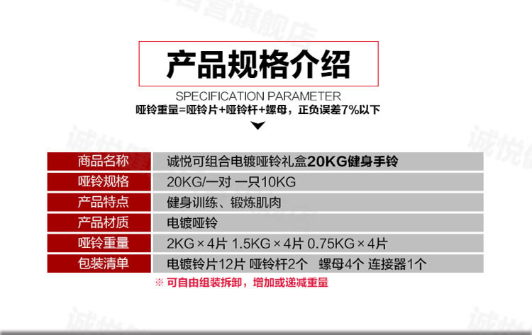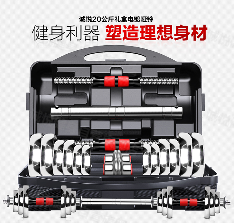 - 商品名称:诚悦电镀哑铃杠铃20kg(10公斤*2)礼盒男女士运动健身训练器材家用组合升级套装赠护手护腕加长连接器CY-025