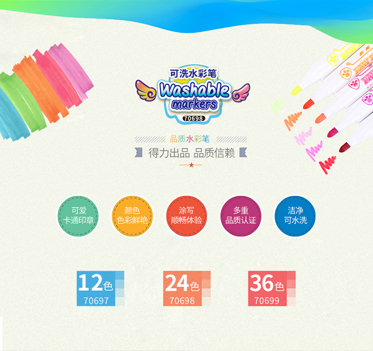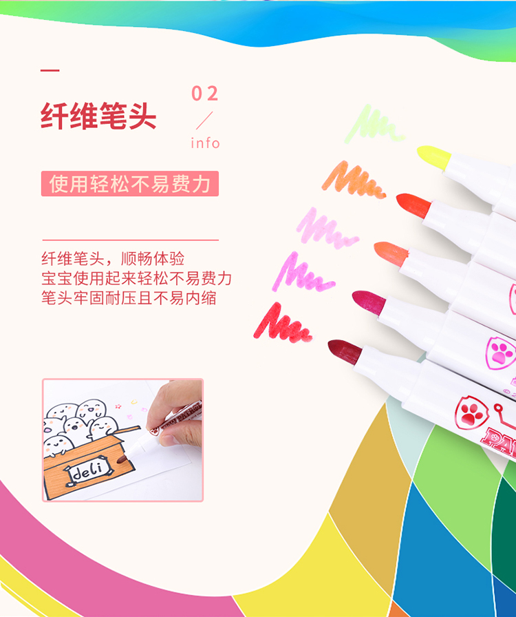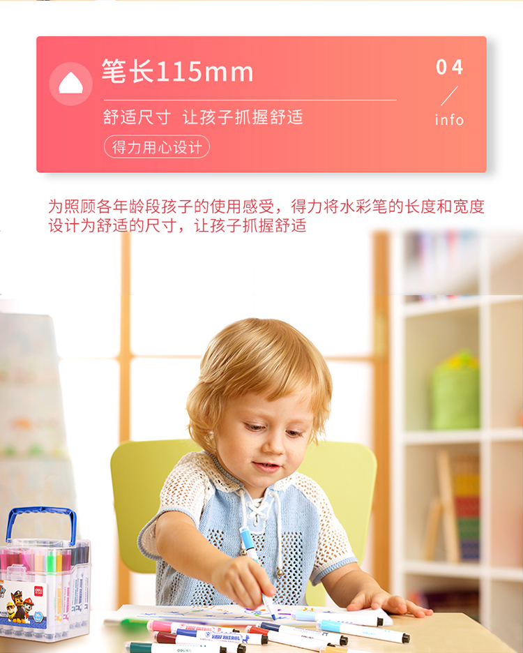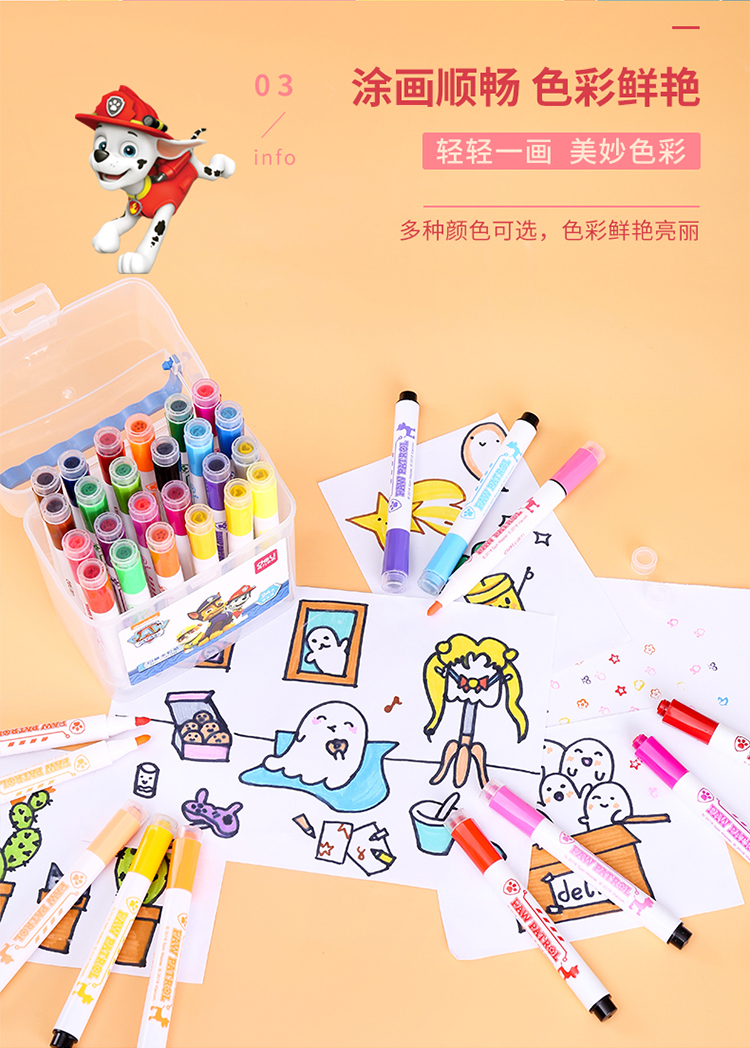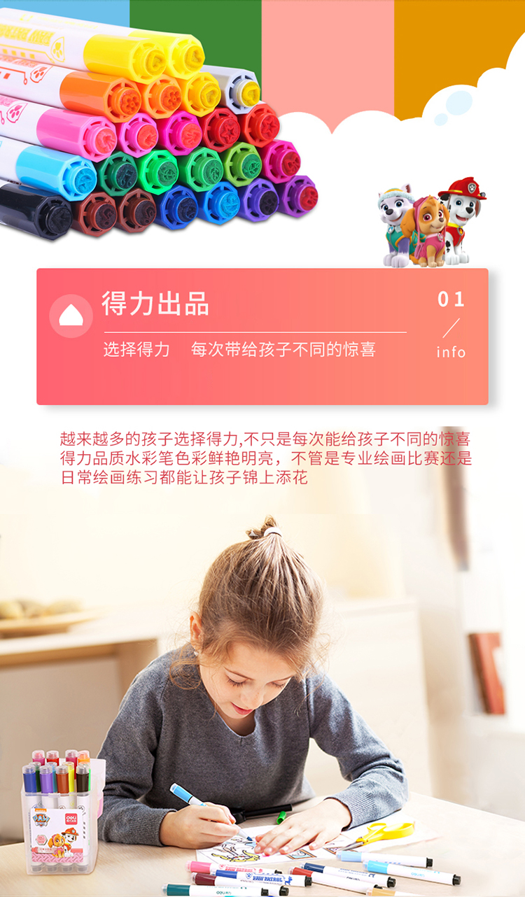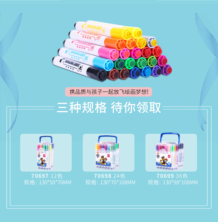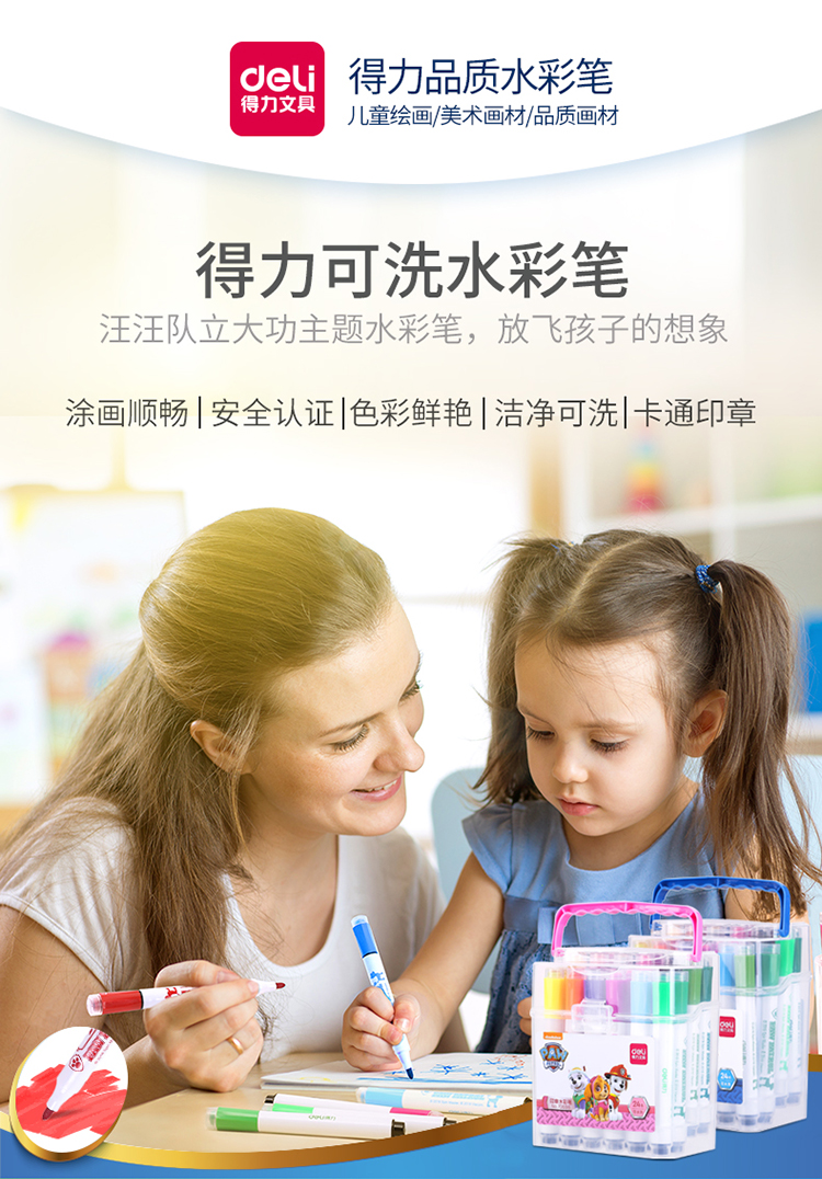 商品名称:得力(deli)汪汪队立大功24色可水洗儿童水彩笔带印章 幼儿涂鸦绘画笔套装宝宝画笔玩具 元旦新年礼物玩具套装