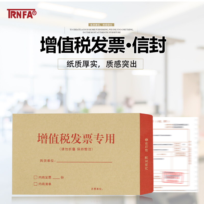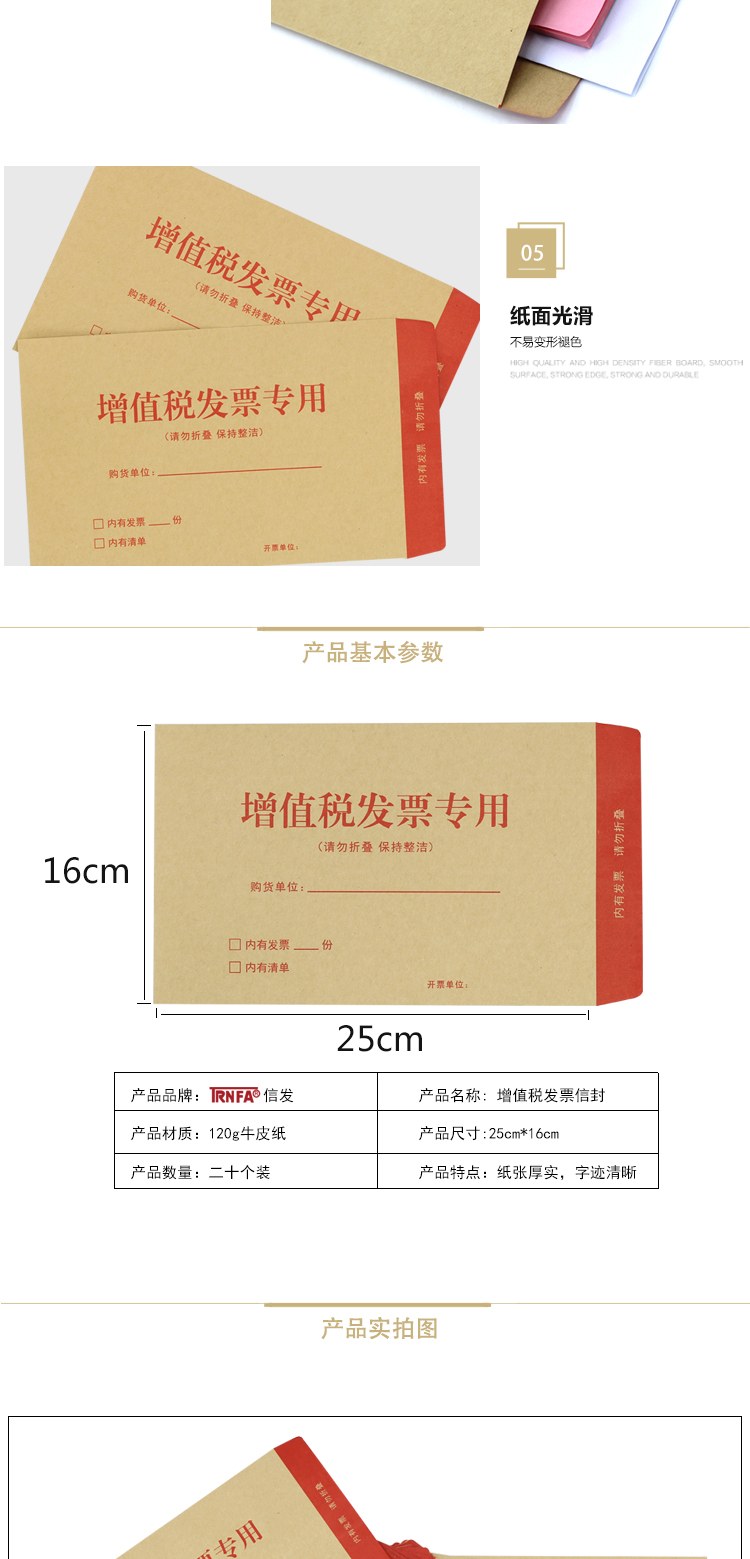 商品名称:信发 TRNFA 增值税专用信封 财务票据袋/牛皮纸发票信封 增票信袋250*160MM加厚20个装