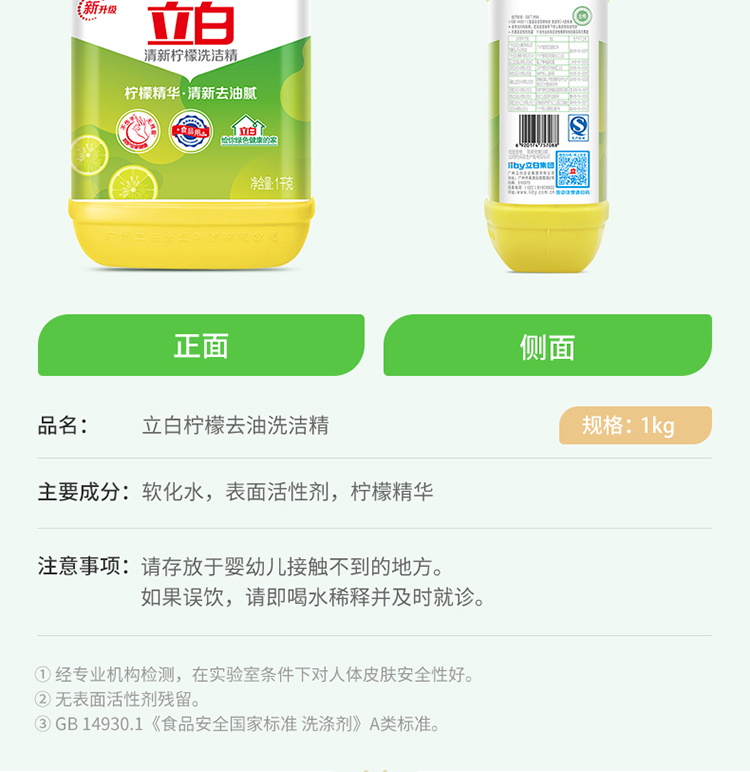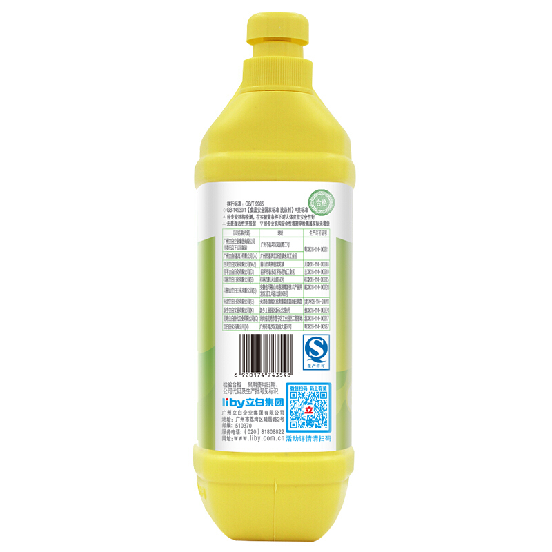 商品名称:立白柠檬洗洁精1kg/瓶 (清新柠檬)果蔬清洗餐洗净 洗洁精 洗涤灵 快速去油 不伤手