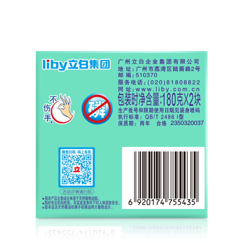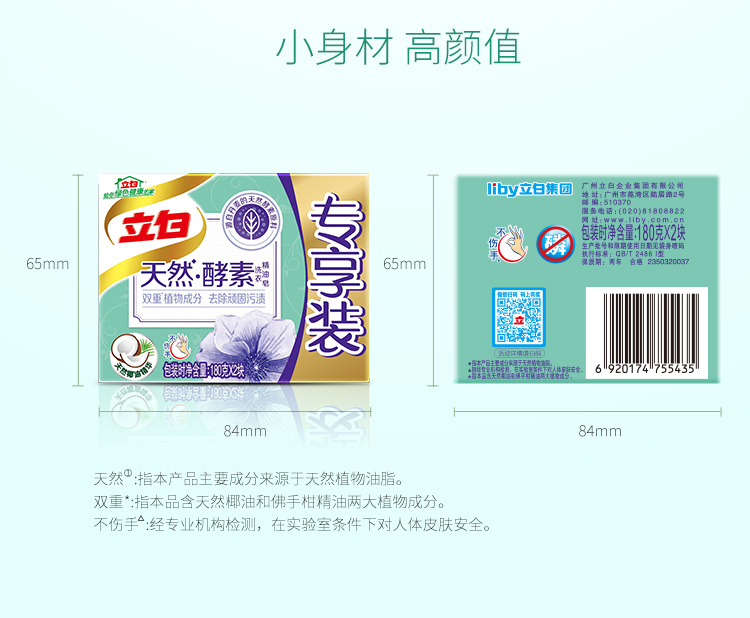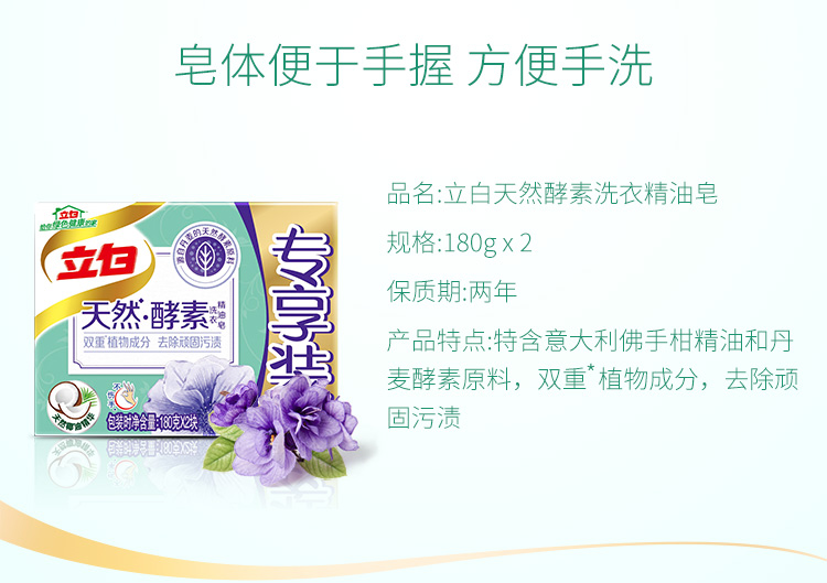 商品名称:立白天然酵素洗衣皂洗衣精油皂专享装360g(180g*2)肥皂双重植物成分 去除污渍
