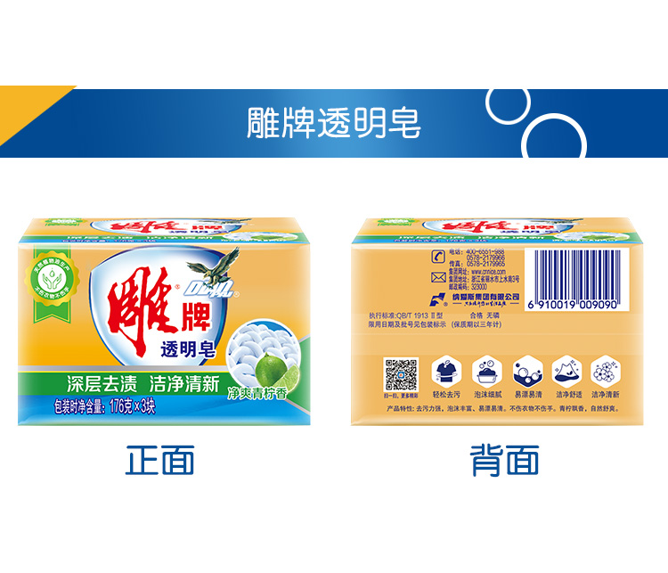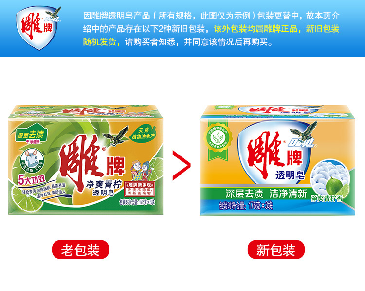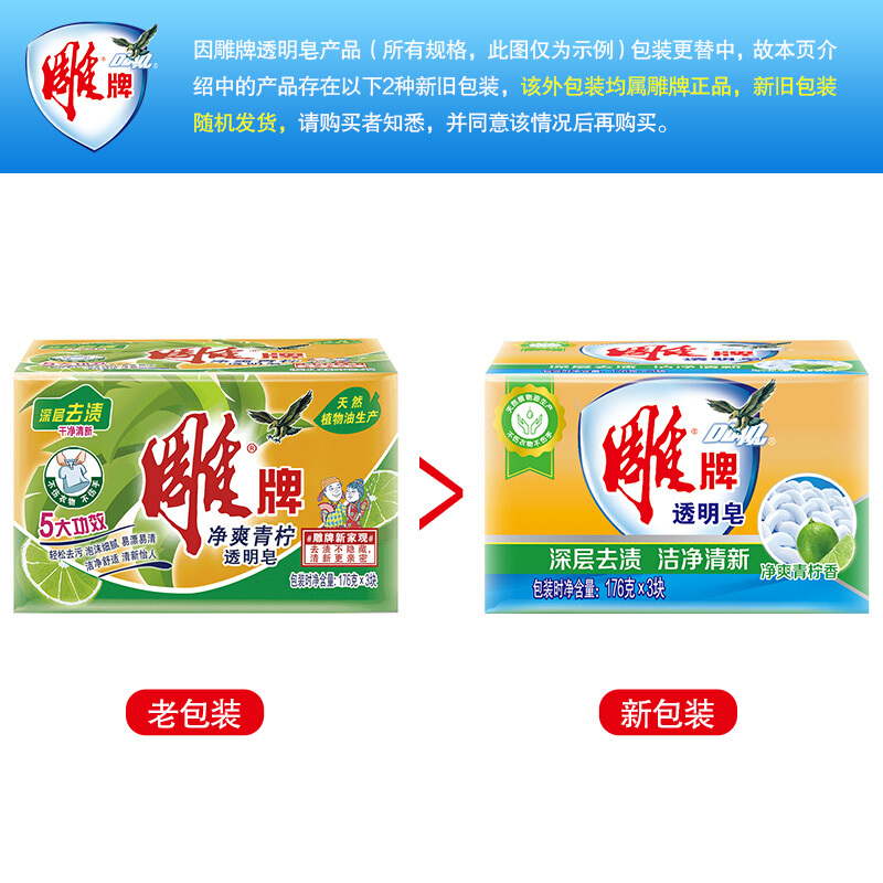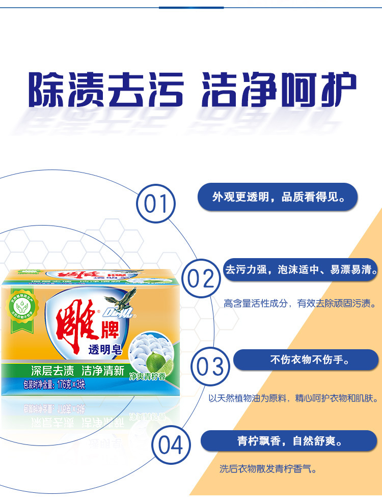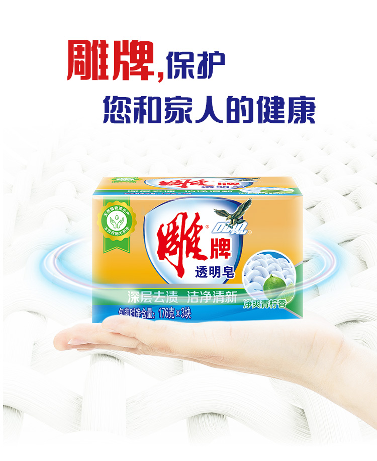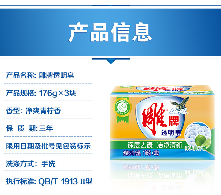 商品名称:雕牌 透明皂/洗衣皂176g*3块 深层去渍 肥皂(新老包装随机发货)