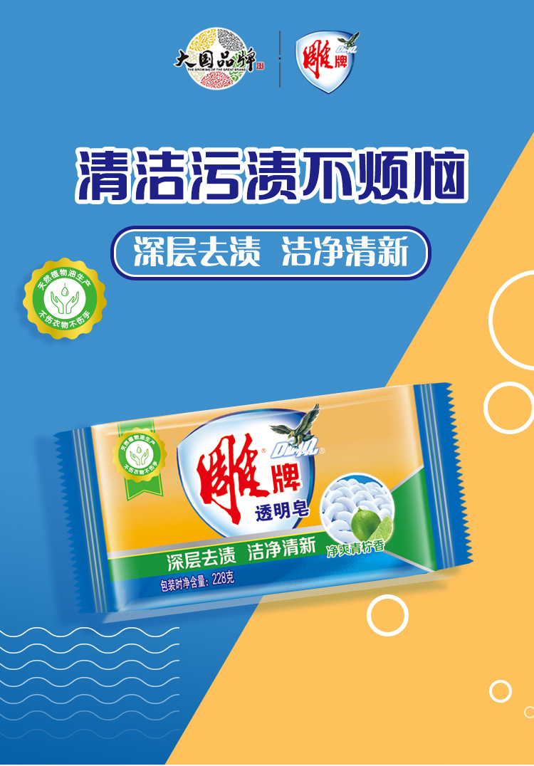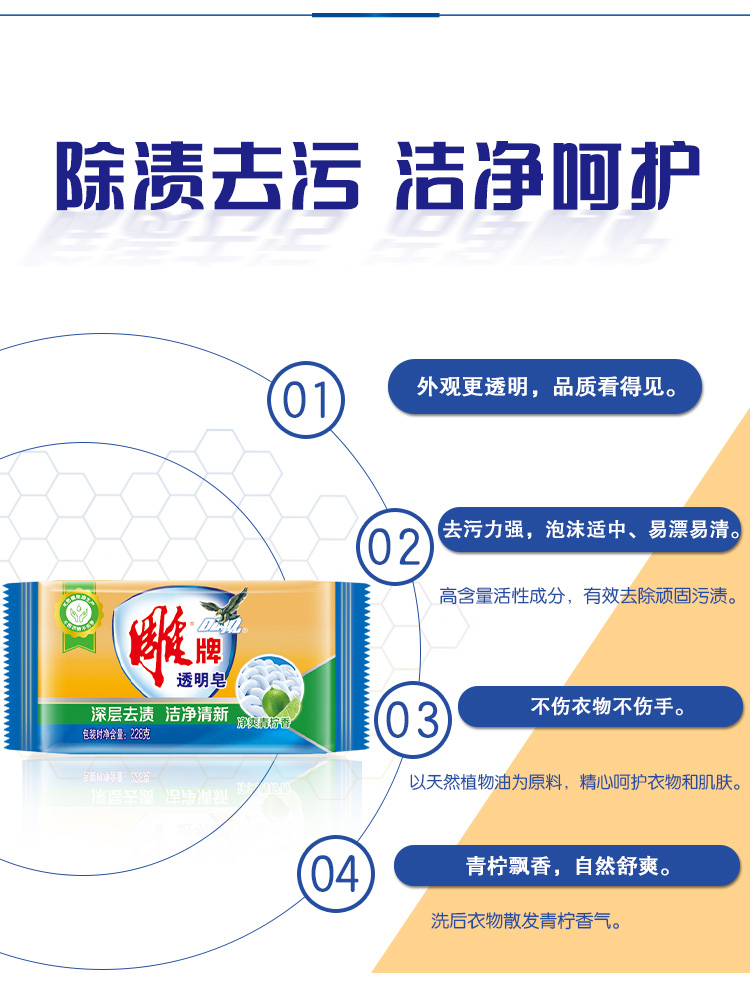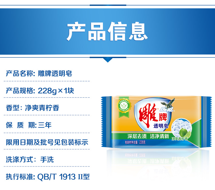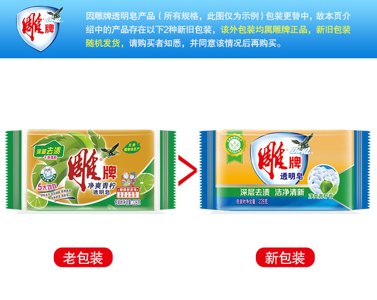 商品名称:雕牌 青柠飘香透明皂/洗衣皂228g 肥皂(新老包装随机发货)