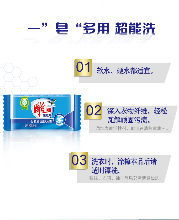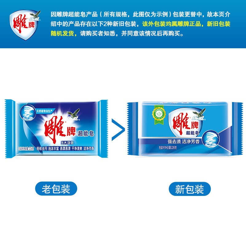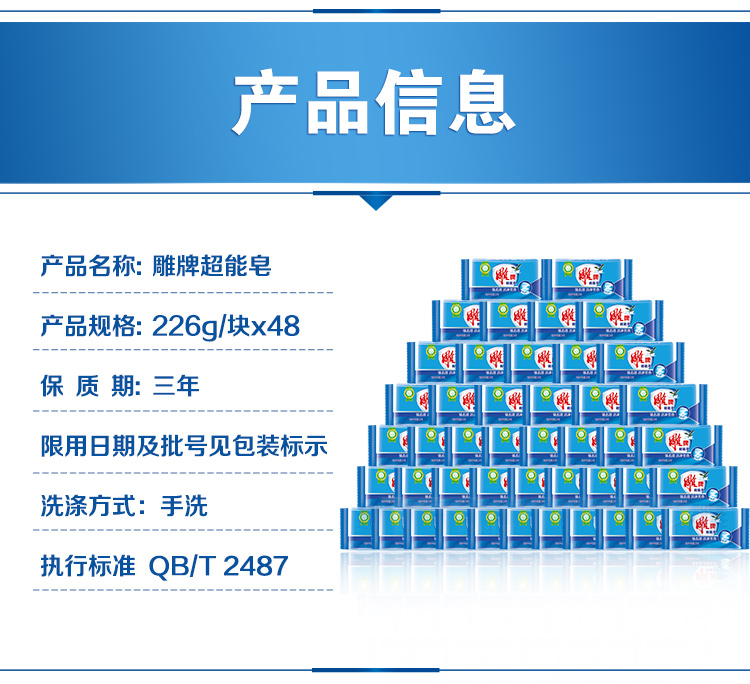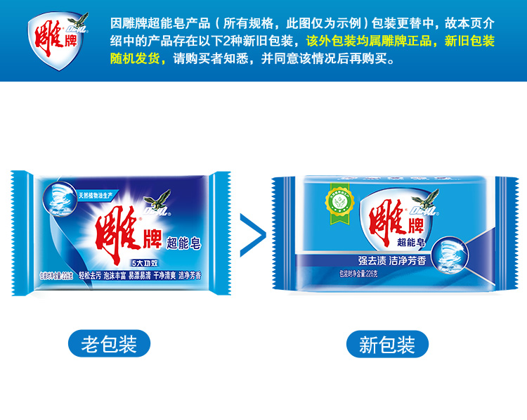 商品名称:雕牌 超能皂226g*48 深层去渍 洗衣皂/肥皂 整箱装(新老包装随机发货)