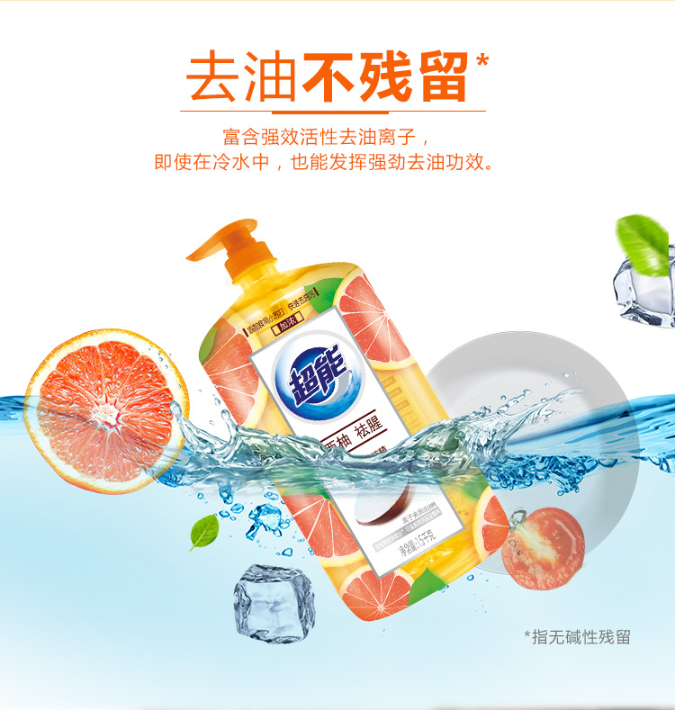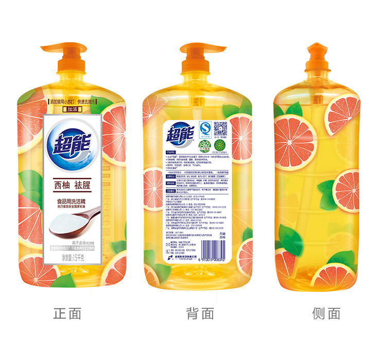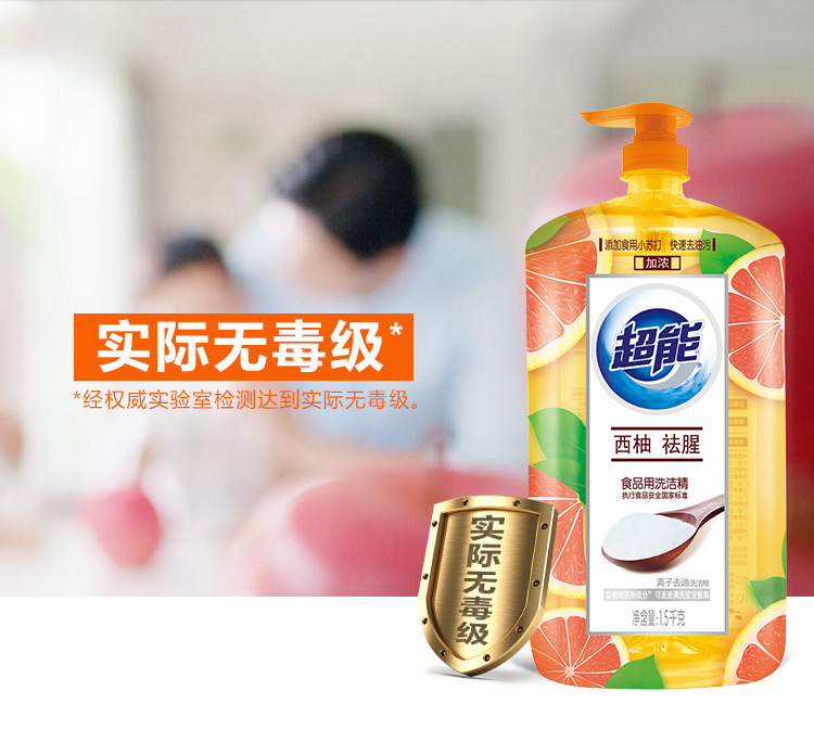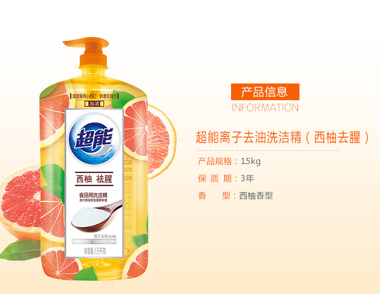 商品名称:超能 离子去油洗洁精(西柚祛腥)1.5kg 加浓 食用小苏打去油污(新老包装随机发货)