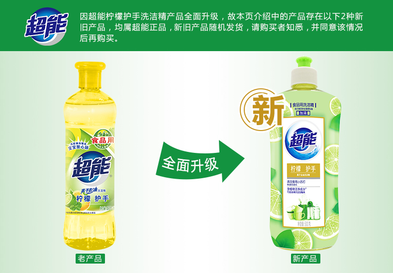 商品名称:超能 离子去油洗洁精(柠檬护手)500g(新老包装随机发货)