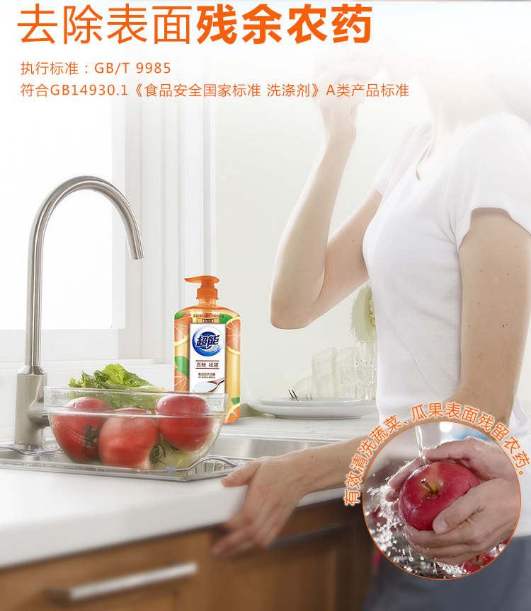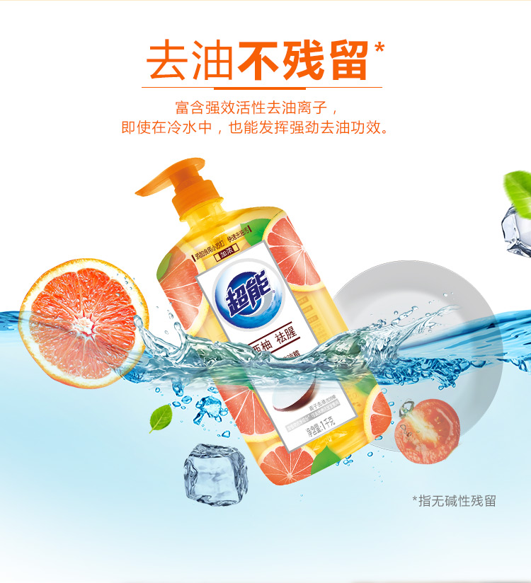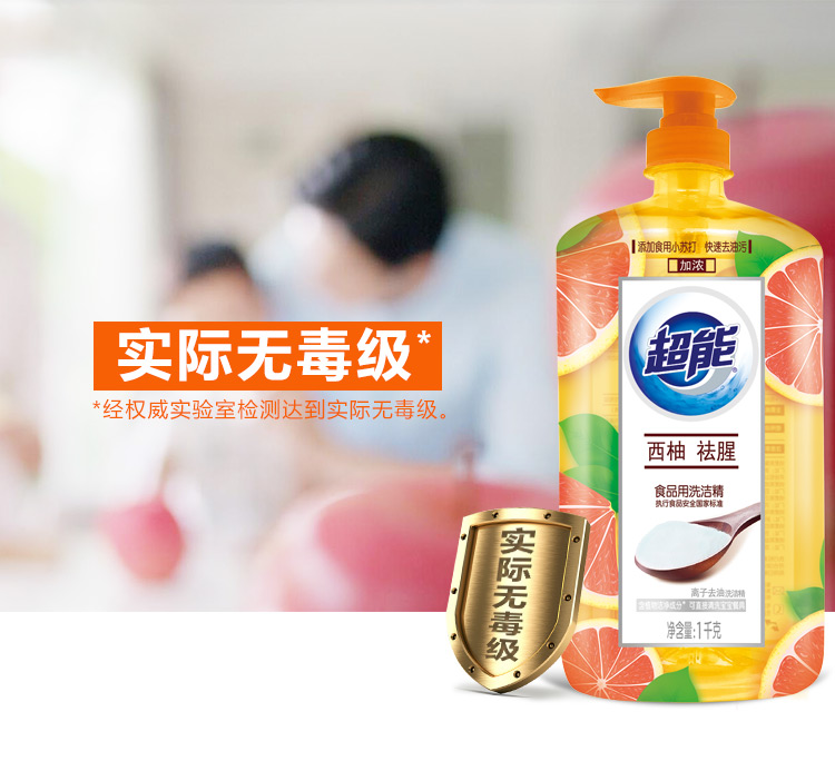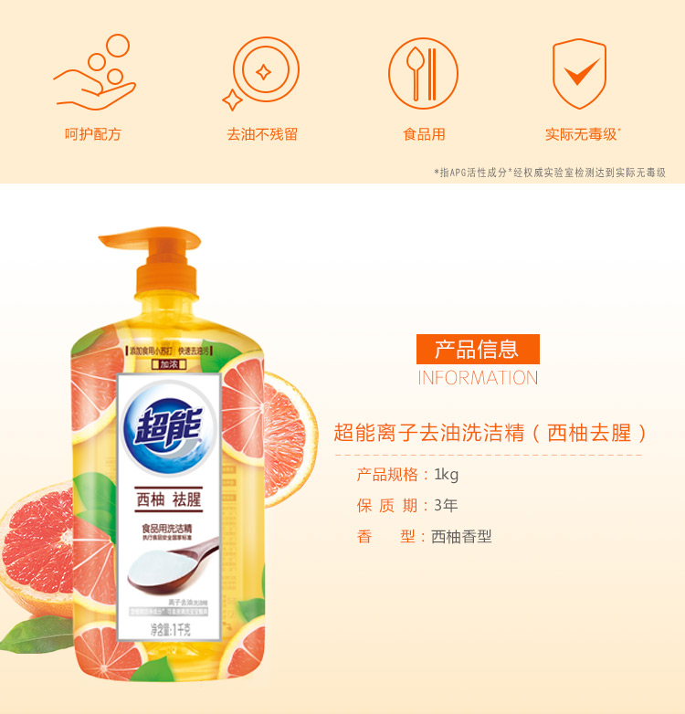 商品名称:超能 离子去油洗洁精(西柚祛腥)1kg(新老包装随机发货)