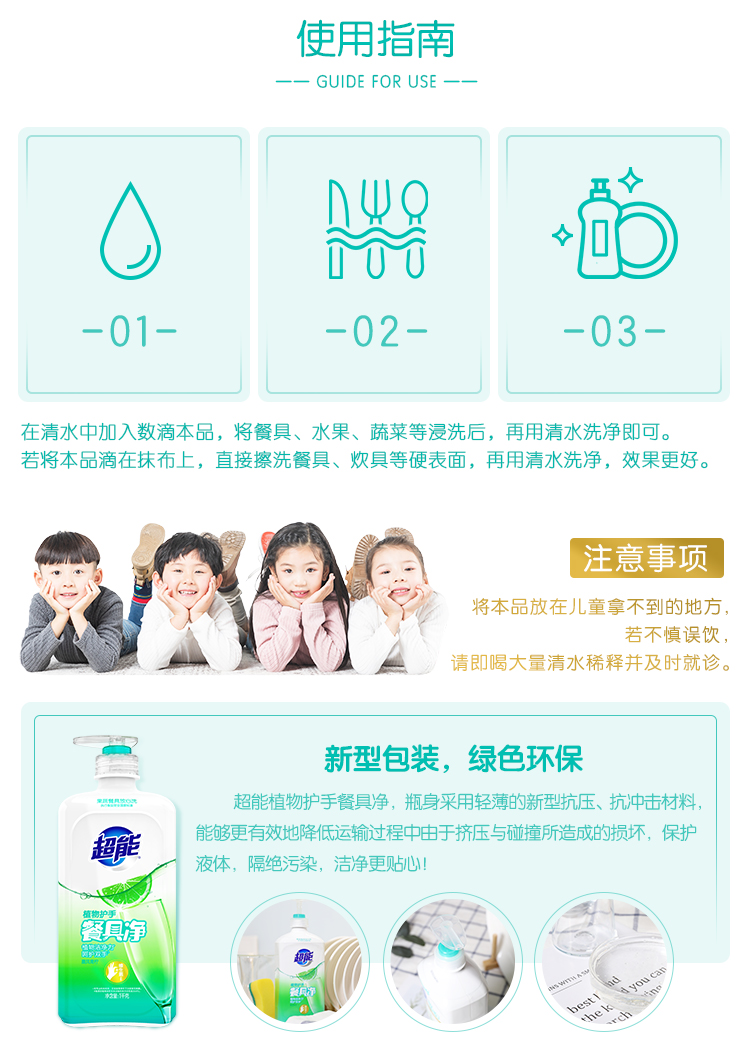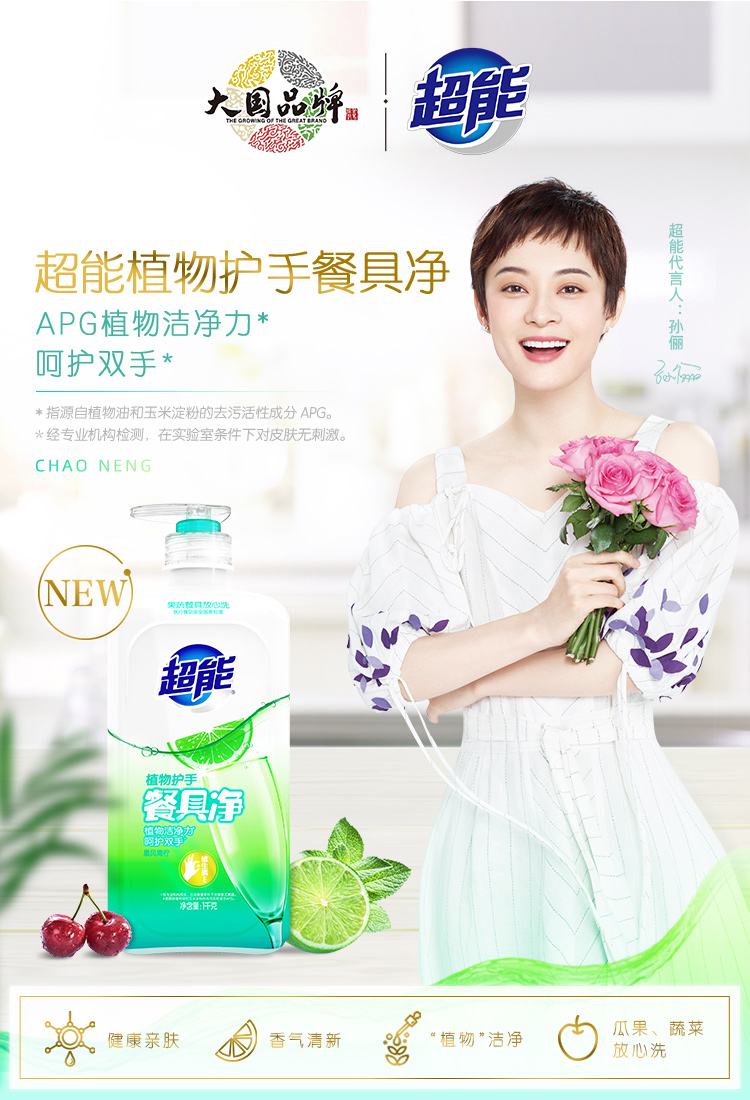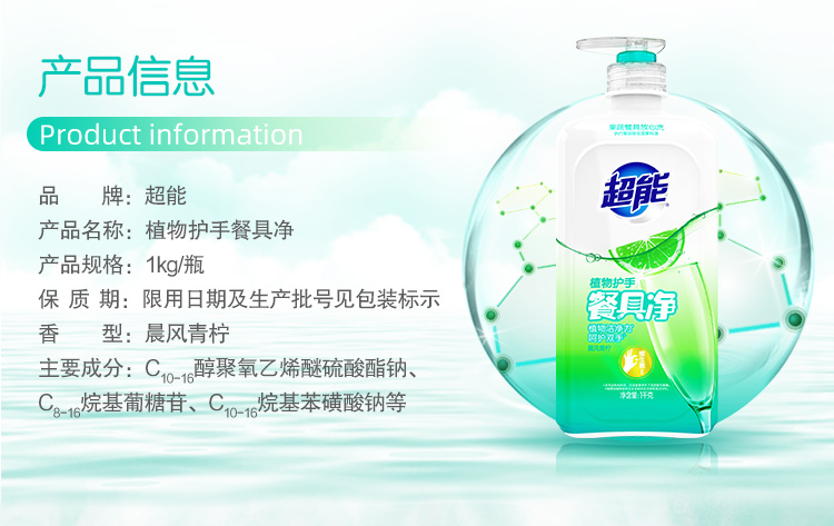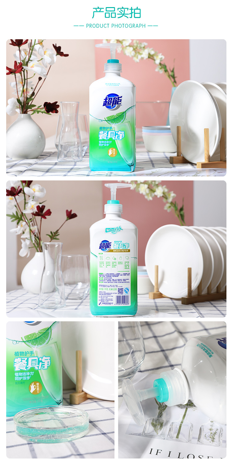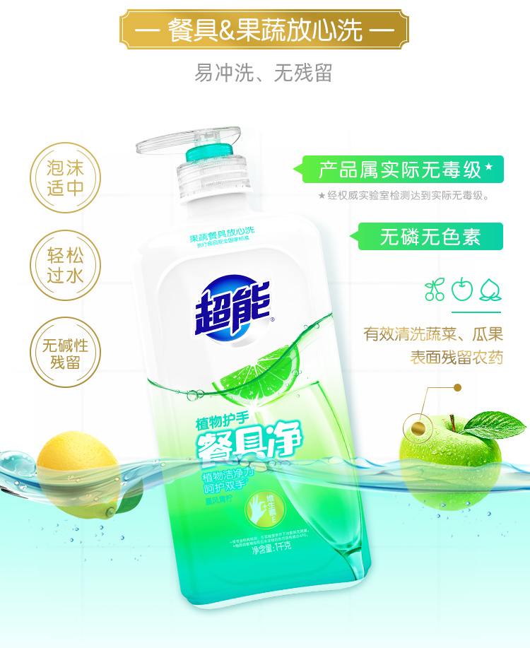 商品名称:超能 洗洁精 植物护手餐具净 1kg 瓶装 餐具清洗 去油污