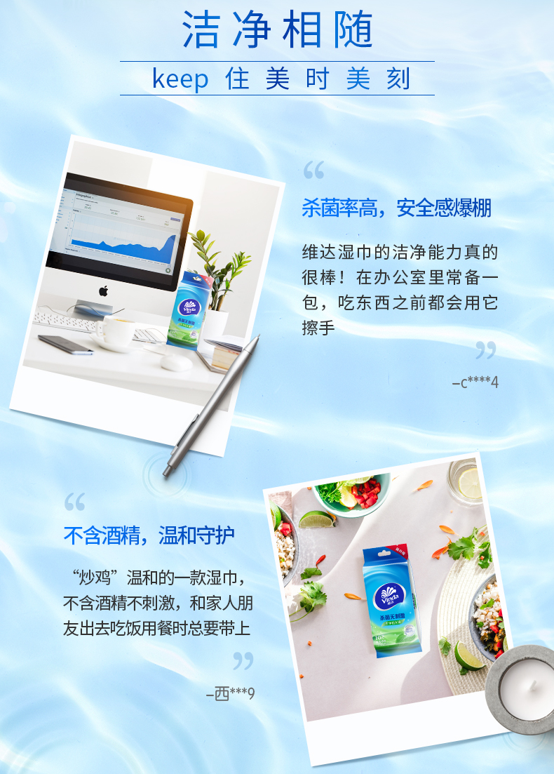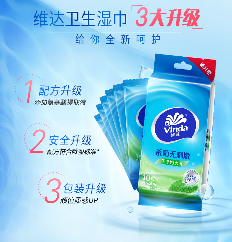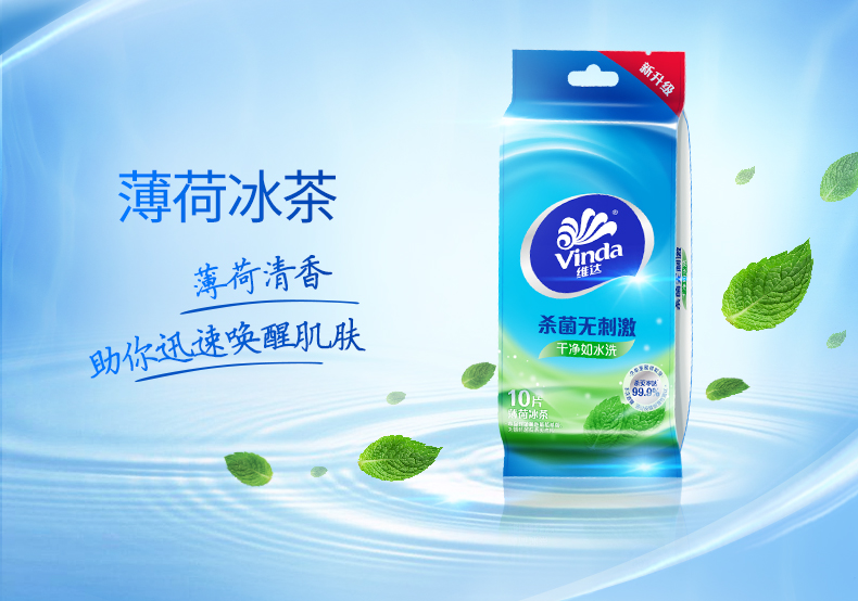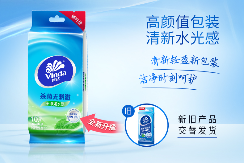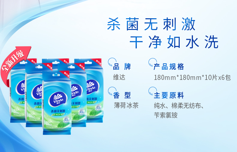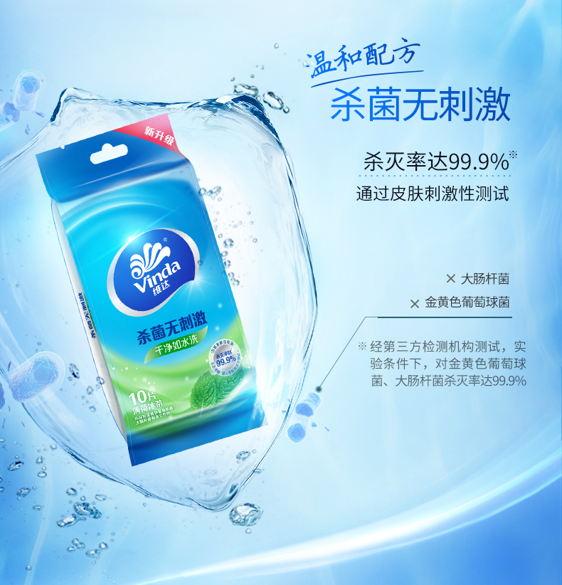 维达(Vinda) 湿巾纸巾 杀菌洁肤卫生湿巾 10片独立装*6包 (量贩装) 冰爽醒肤