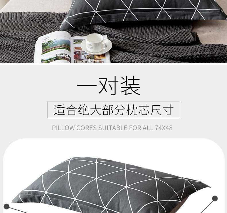 南极人 Nanjiren 枕套家纺 全棉枕套 纯棉斜纹枕头套枕芯套 慕尚 一对装