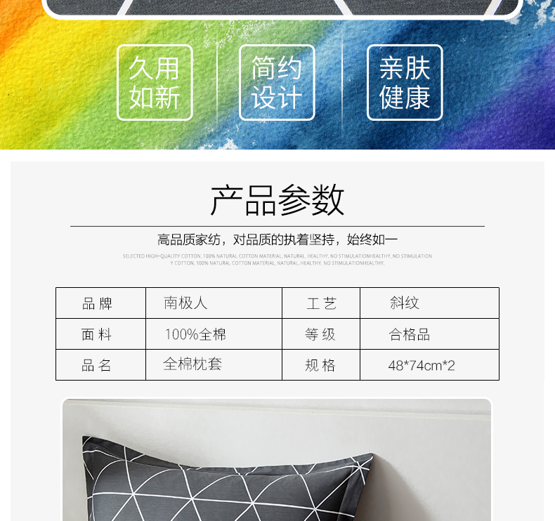 商品名称:南极人 Nanjiren 枕套家纺 全棉枕套 纯棉斜纹枕头套枕芯套 慕尚 一对装