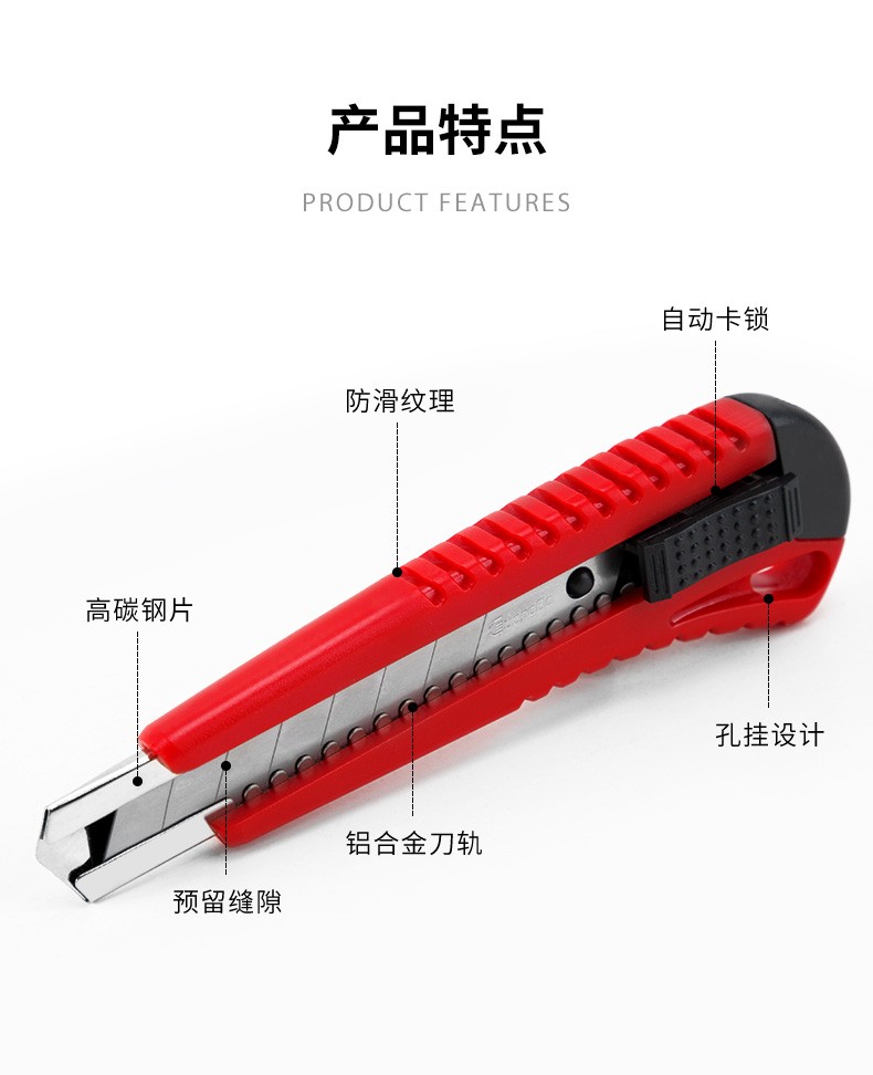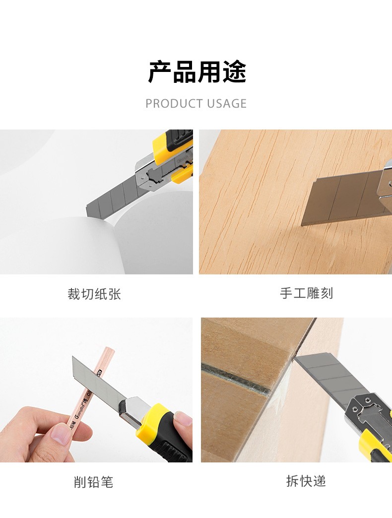 - 商品名称:广博(GuangBo)大号美工刀防滑裁纸刀壁纸刀内含3片刀片 办公用品 颜色随机 MG5435
