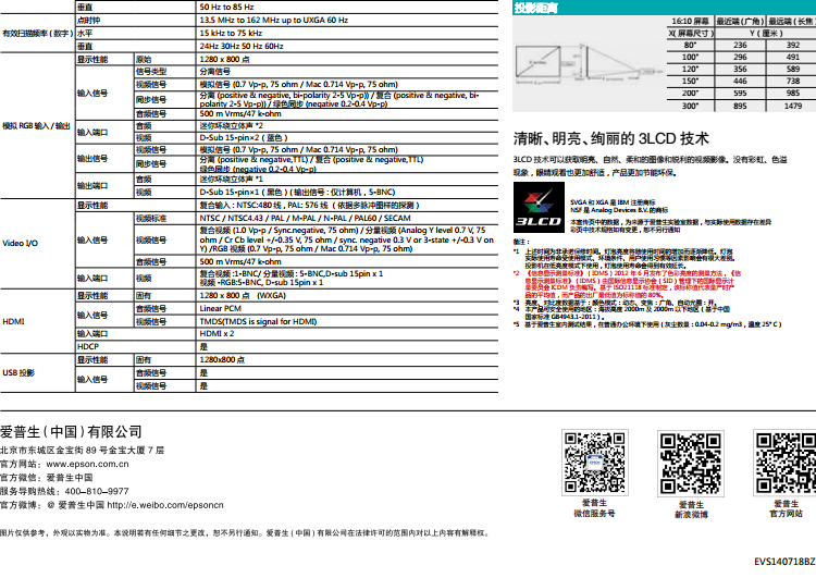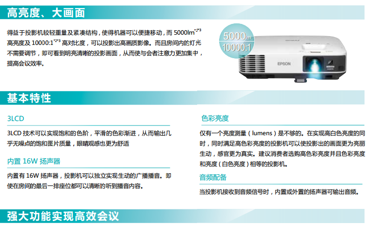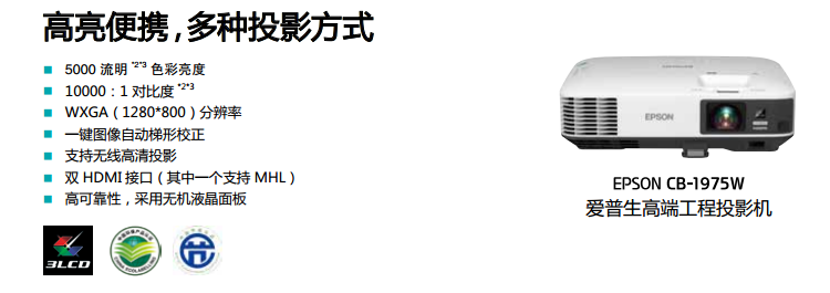 爱普生(EPSON)EB-C765XN 商务会议教育投影机 5000流明