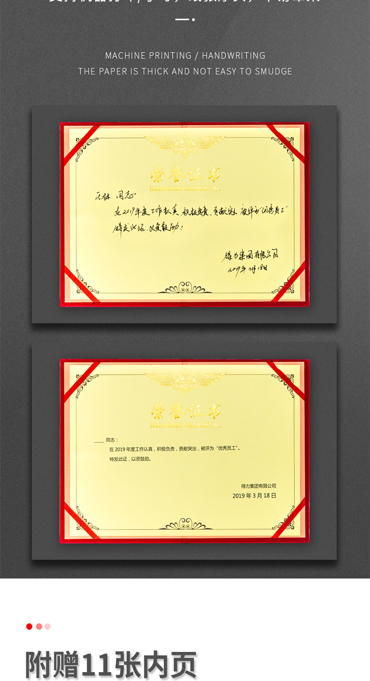 得力(deli)10本8K绒面荣誉证书附带内芯 50704-10