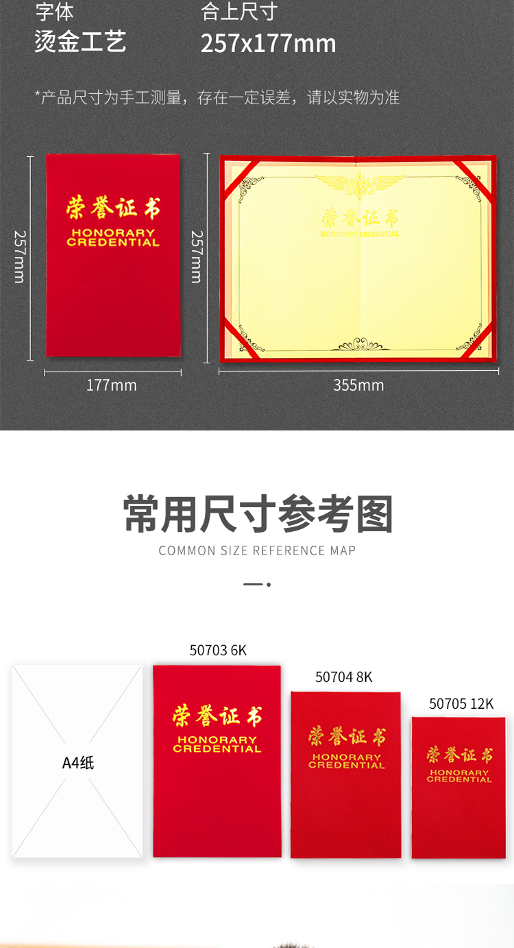 商品名称:得力(deli)10本8K绒面荣誉证书附带内芯 50704-10