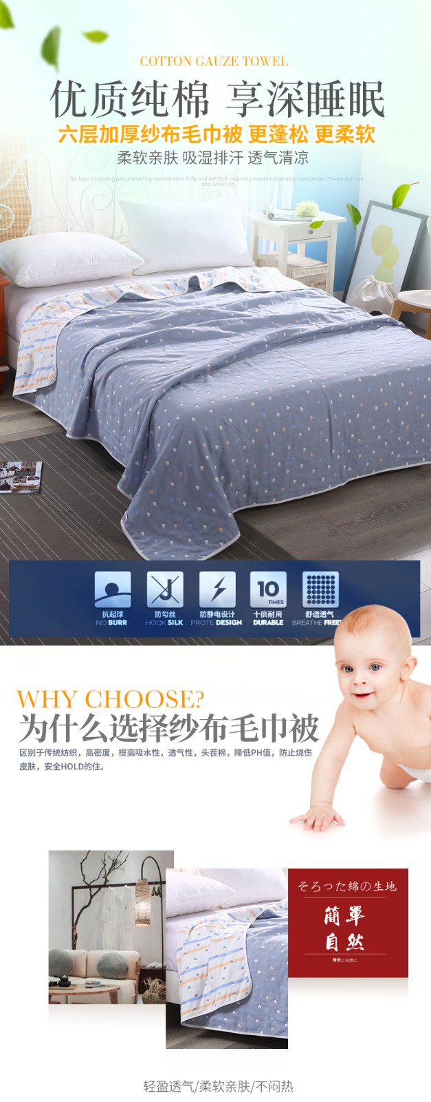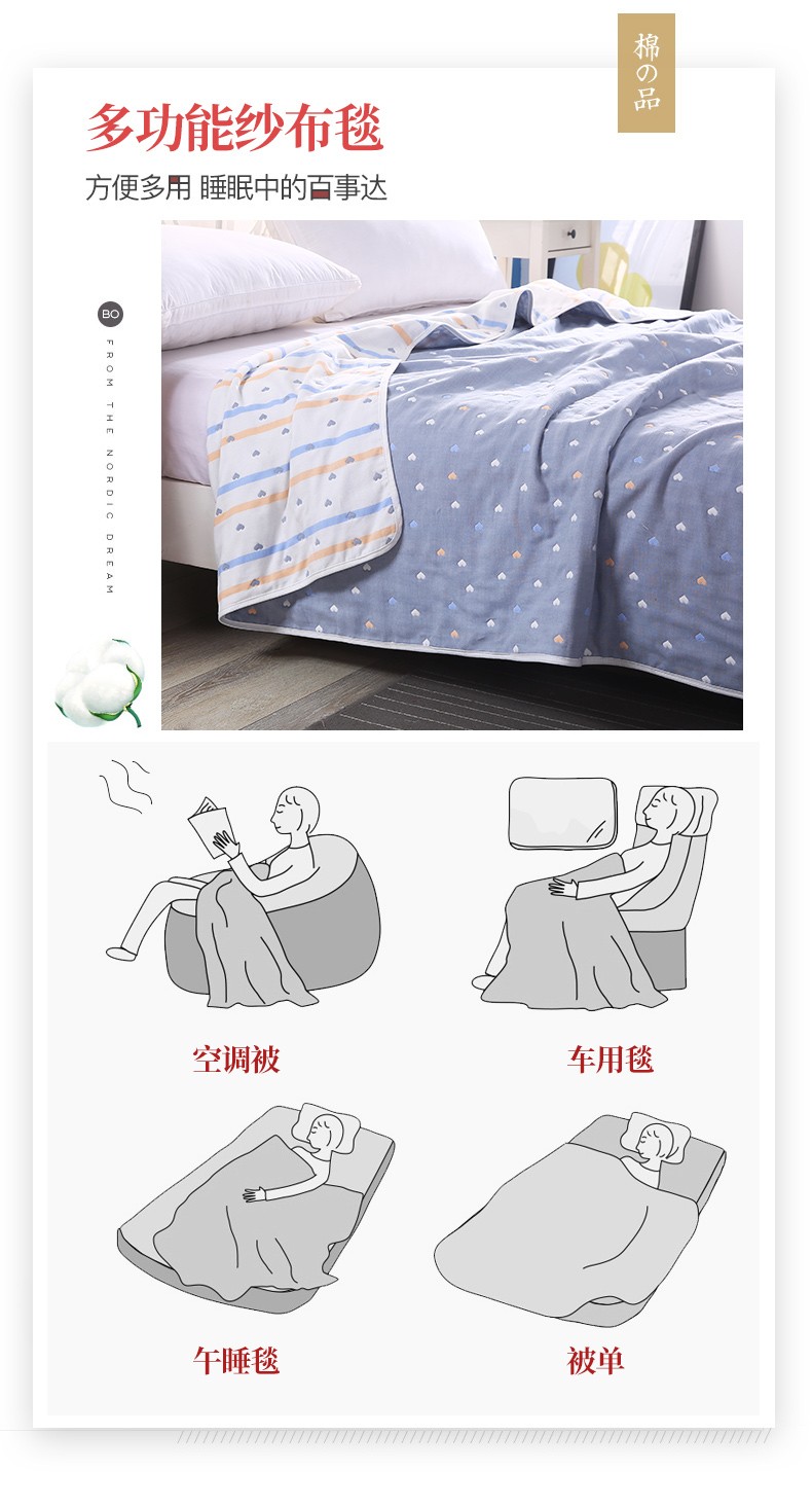 - 商品名称:南极人六层纱布毛巾被纯棉夏被空调被子毛毯被子单人双人全棉毛毯加厚童婴儿午睡毯纱布盖毯 星星粉色 200*230
