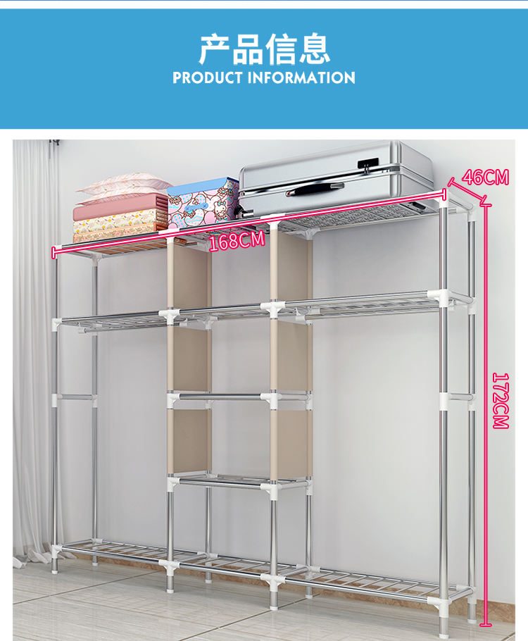 - 商品名称:蜗家布衣柜加粗25管卧室简易衣柜双人加厚家用宿舍出租房布艺衣橱组装收纳柜子衣服柜2561
