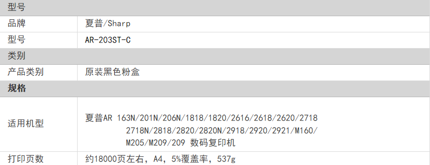 商品名称:夏普(SHARP)AR-203ST 黑色碳粉