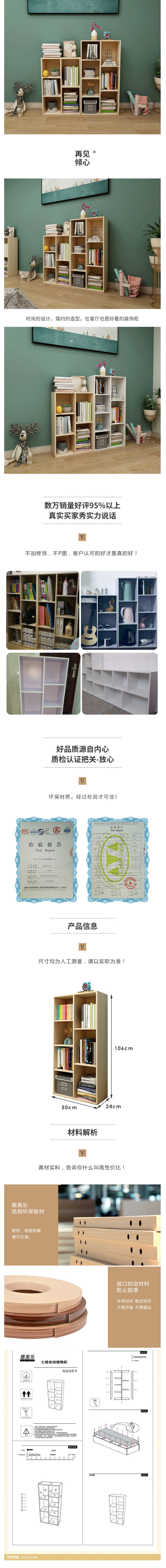 - 商品名称:雅美乐 书柜 简易简约组合书架落地桌上 储物客厅卧室阳台儿童收纳柜子 七格松木色Y4382