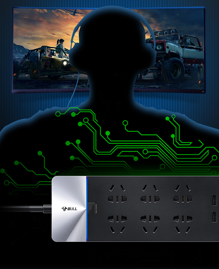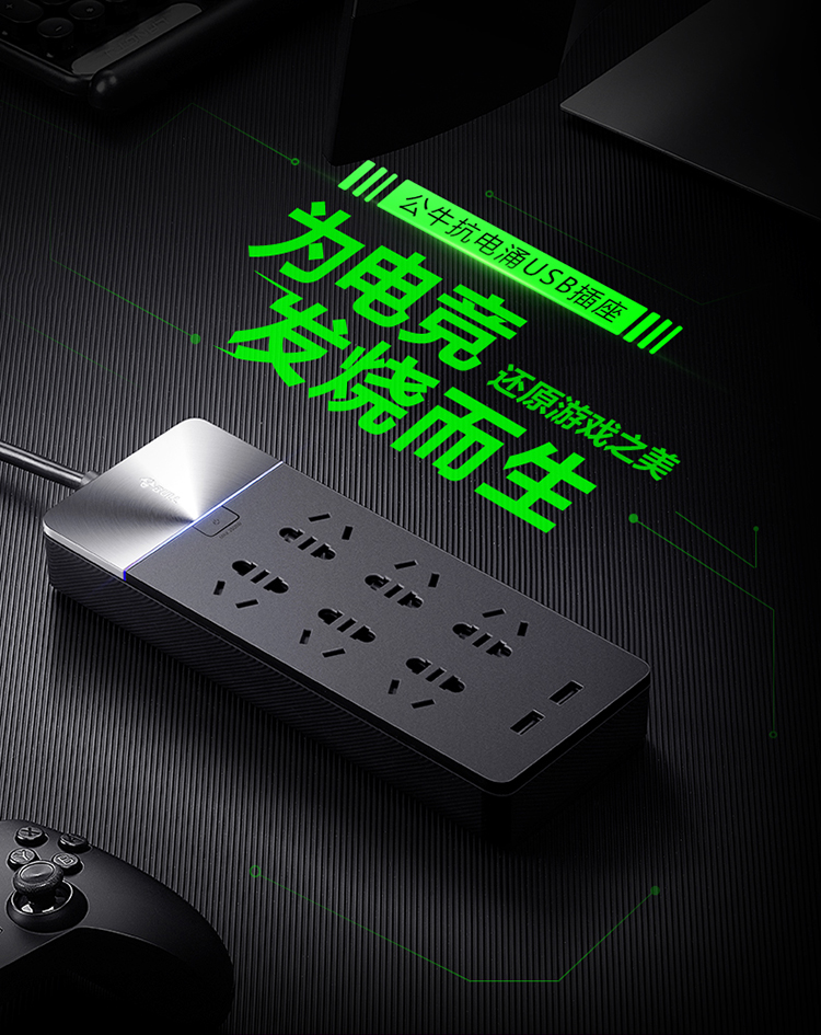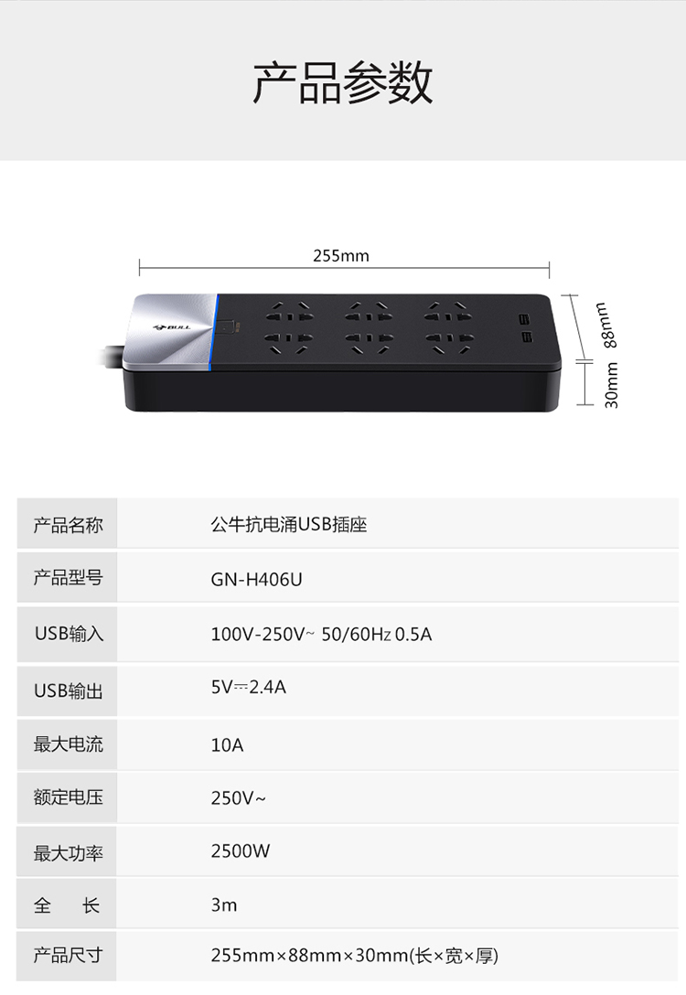 - 商品名称:公牛(BULL)GN-H406U新国标公牛抗电涌USB插座/插排/智能排插/插线板/接线板/拖线板6位+2USB口