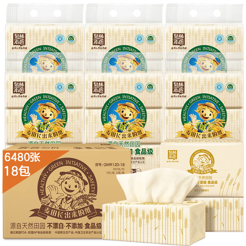 商品名称:泉林本色QWR120-18 加厚抽纸 3层120抽18包(源自天然田园健康环保本色箱装卫生面巾抽纸)