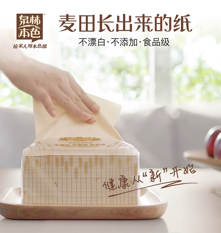 泉林本色QWR120-18 加厚抽纸 3层120抽18包(源自天然田园健康环保本色箱装卫生面巾抽纸)