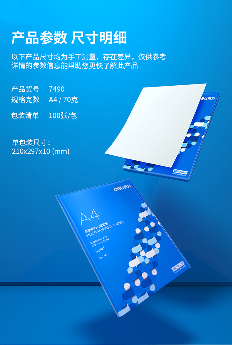- 商品名称:得力(deli)A4打印纸 多功能复印纸 学生演算草稿纸 70g 100页 7490