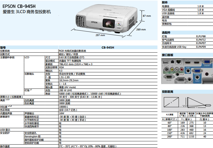 - 商品名称:爱普生(EPSON)CB-945H 投影仪