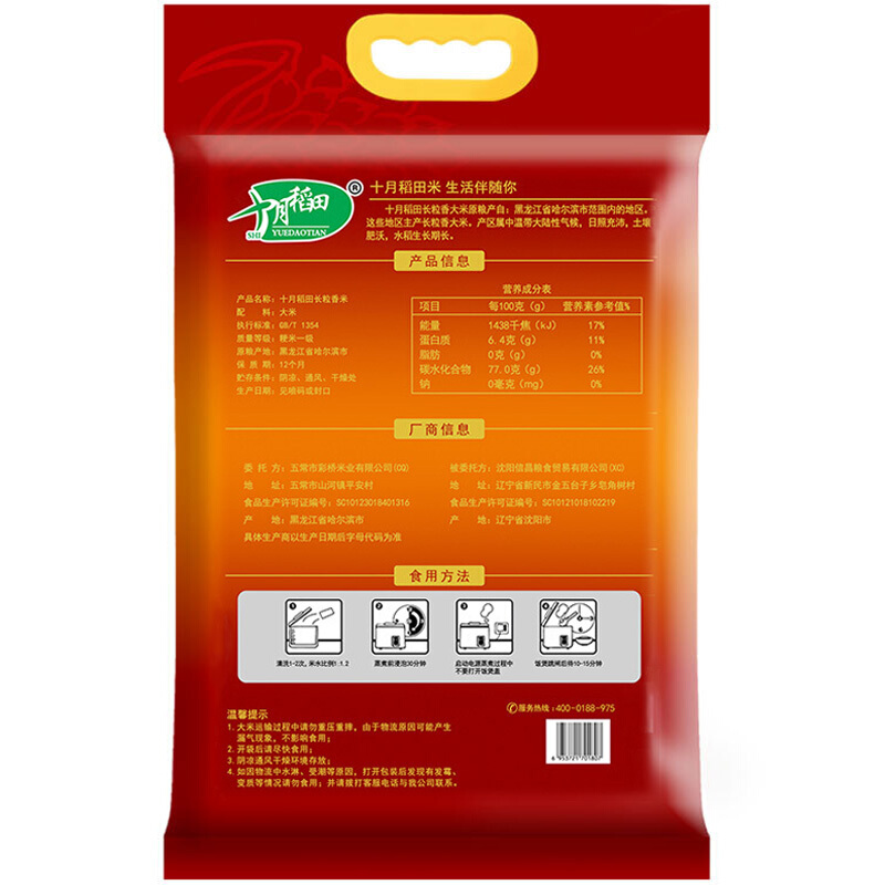 - 商品名称:十月稻田 长粒香大米 10kg 东北大米 香米 粳米 当季新米 十公斤