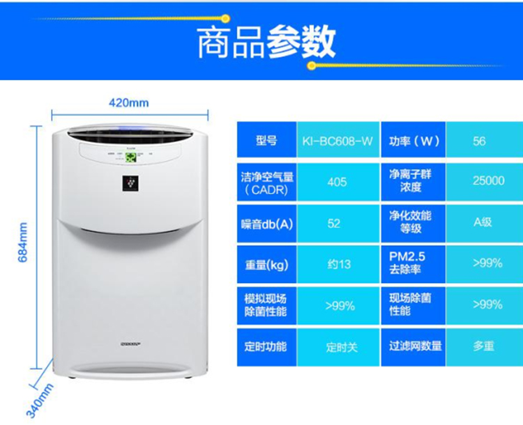 - 商品名称:夏普(SHARP)KI-BC608-W 加湿型空气消毒机净化器