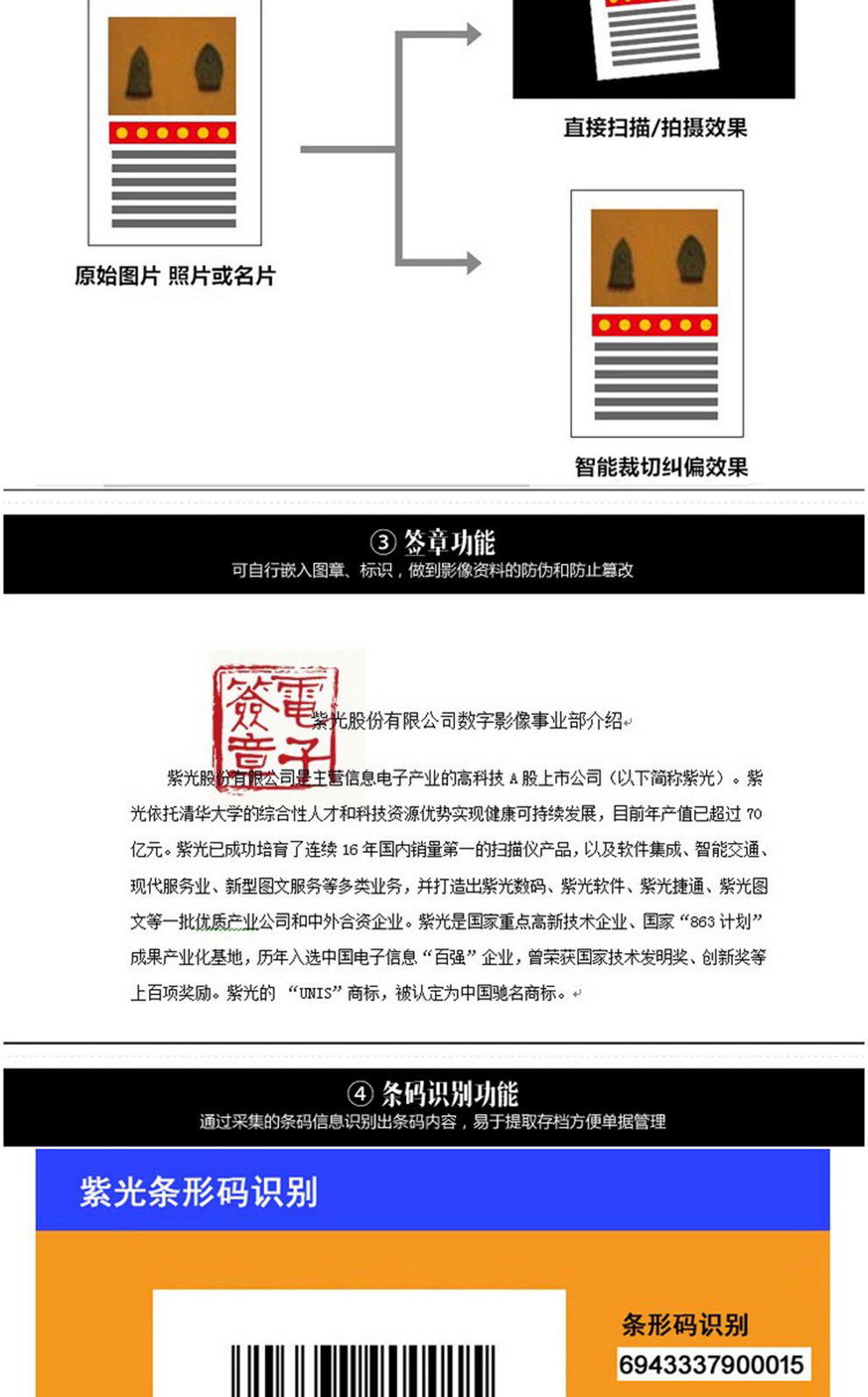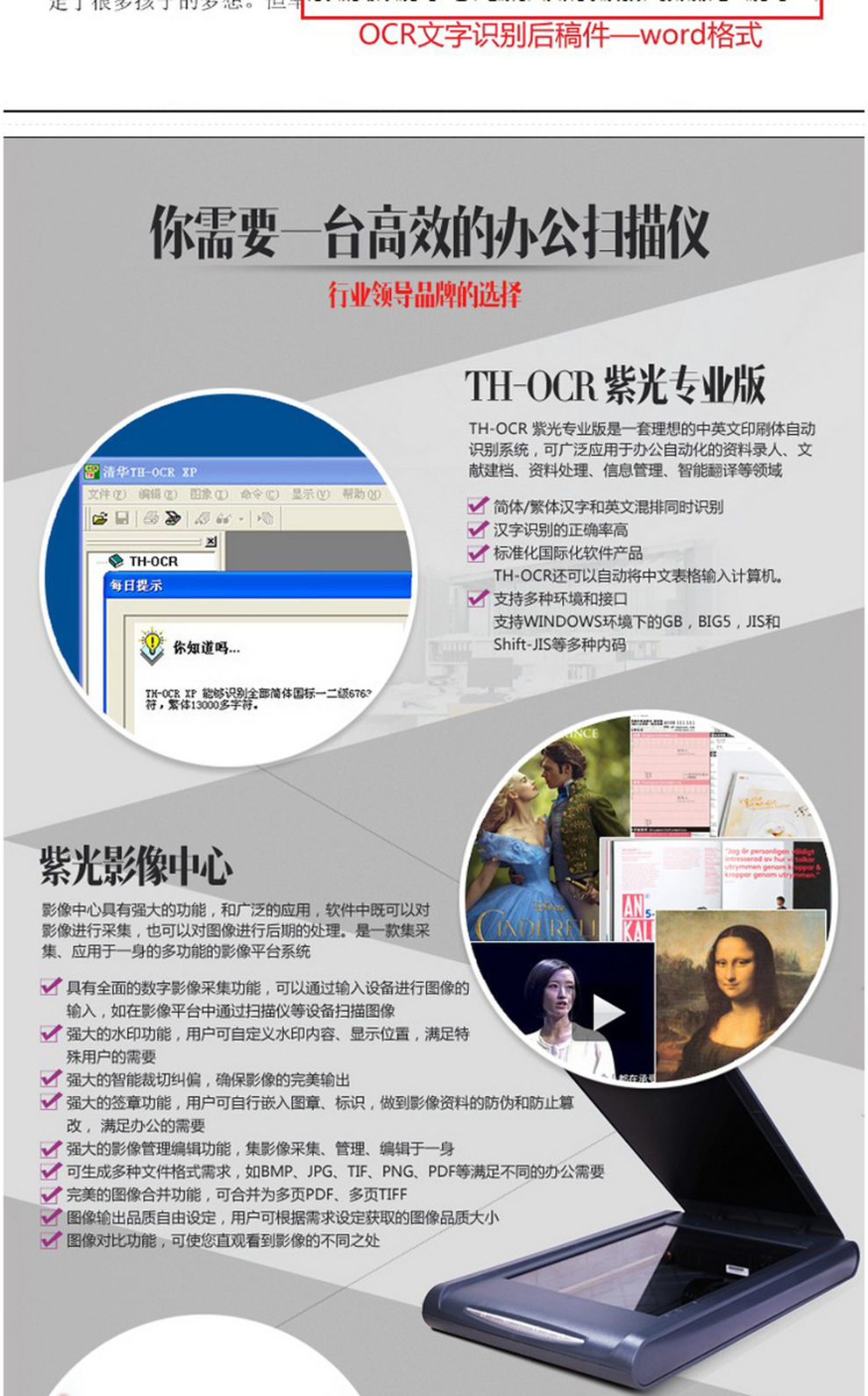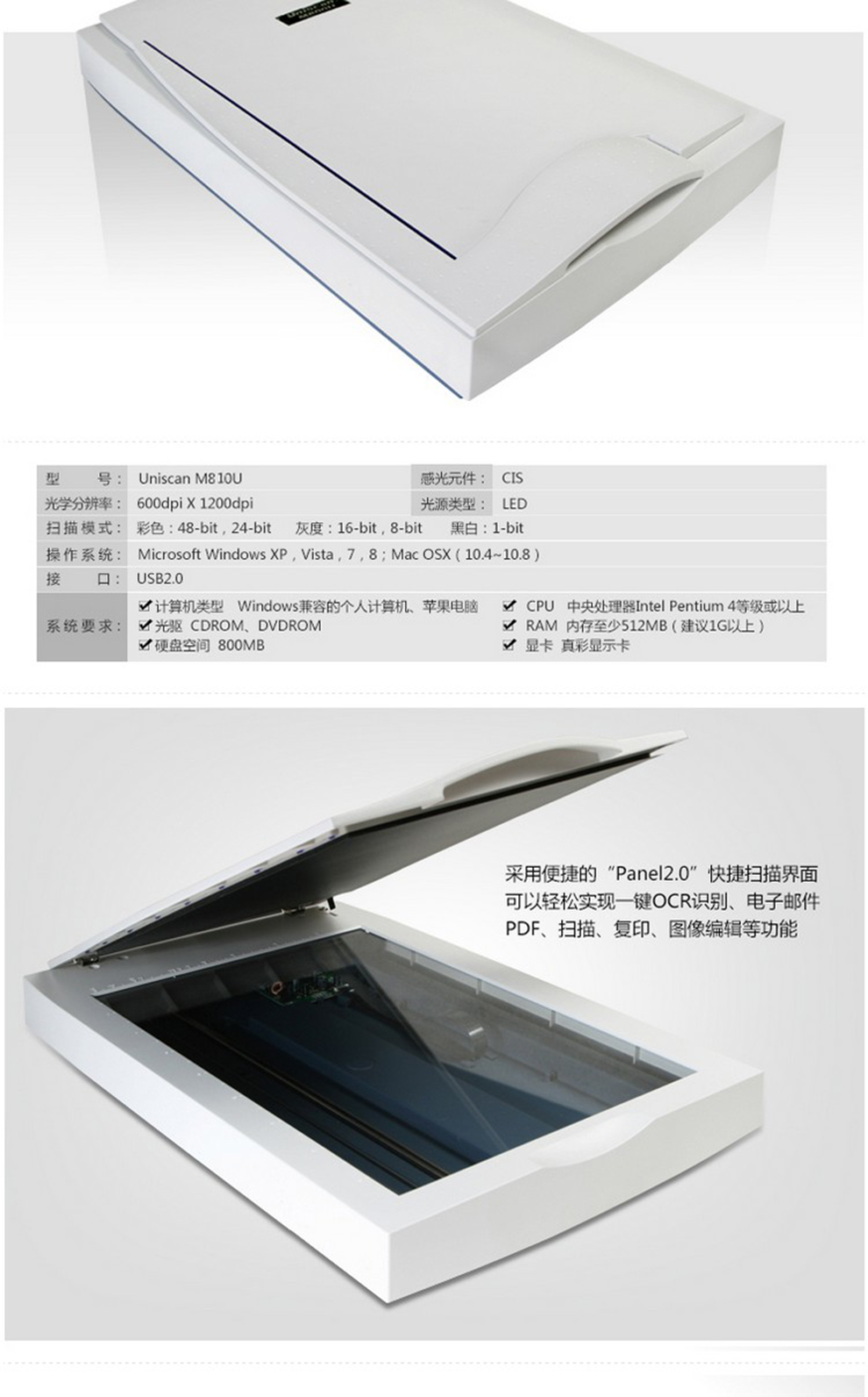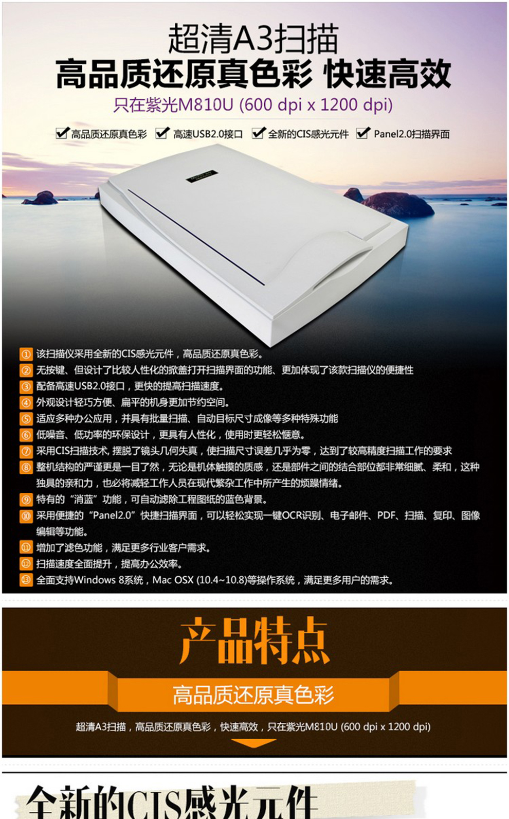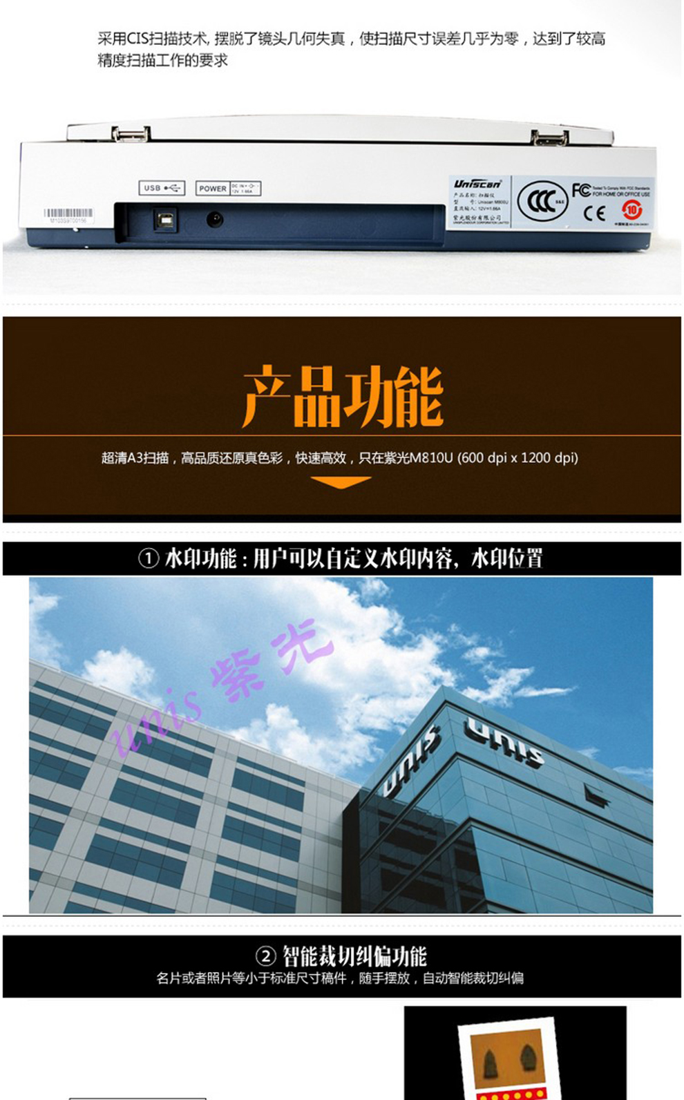 商品名称:紫光 M810U A3彩色平板文档扫描仪