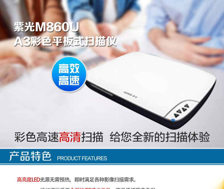 商品名称:紫光(UNIS)M860U A3彩色平板扫描仪