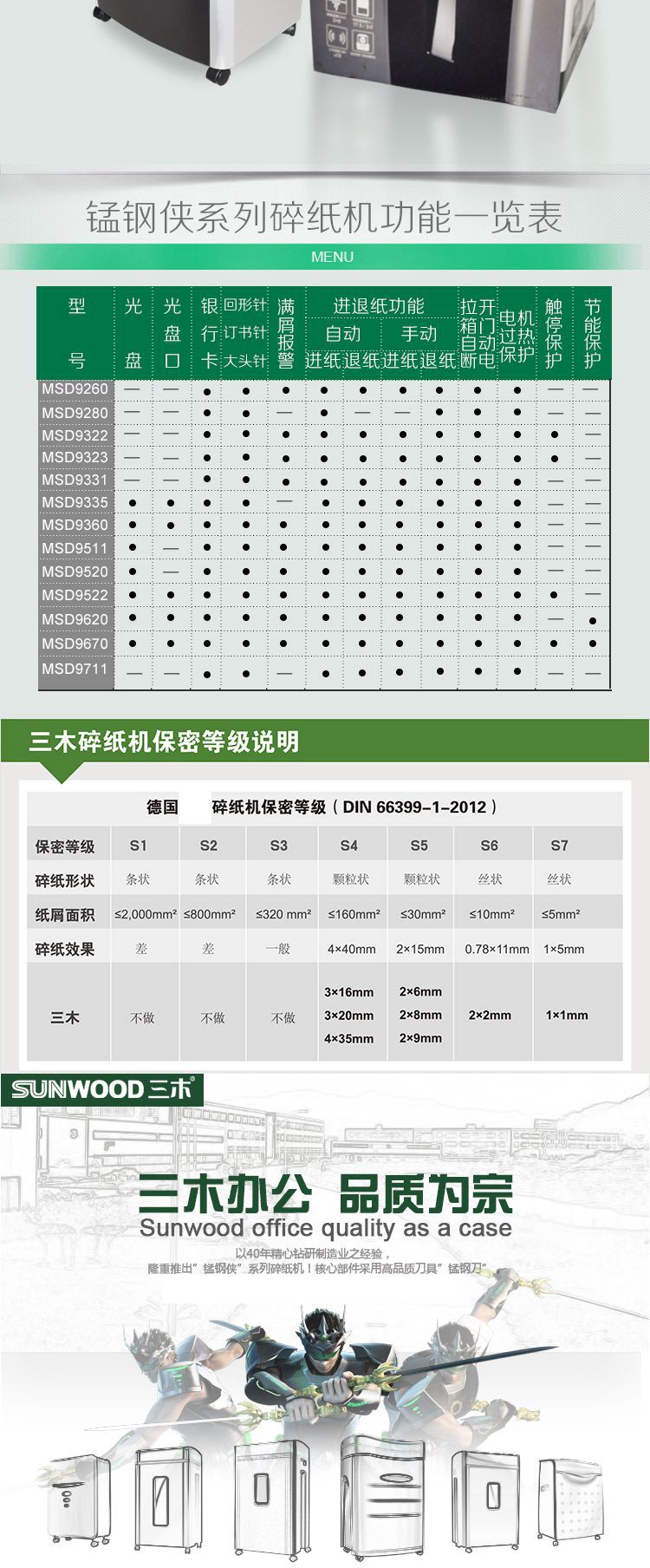 三木(SUNWOOD) MSD9355 锰钢侠系列碎纸机/文件粉碎机 五级保密 双入口