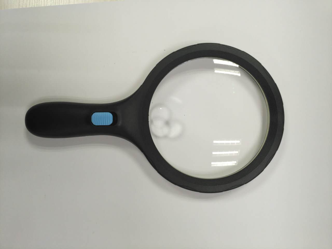 手柄网格设计,增加摩擦力,防滑。树脂镜片,重量轻,放大范围广。