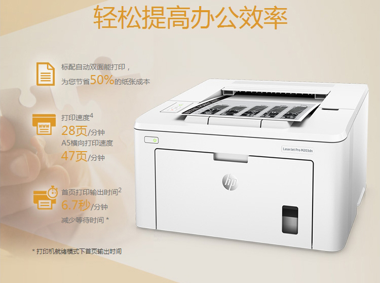 惠普(HP) LaserJet Pro M203dn 黑白激光式打印 有线网络打印 自动双面打印 打印速度 28ppm
