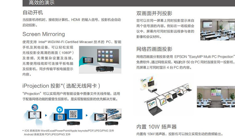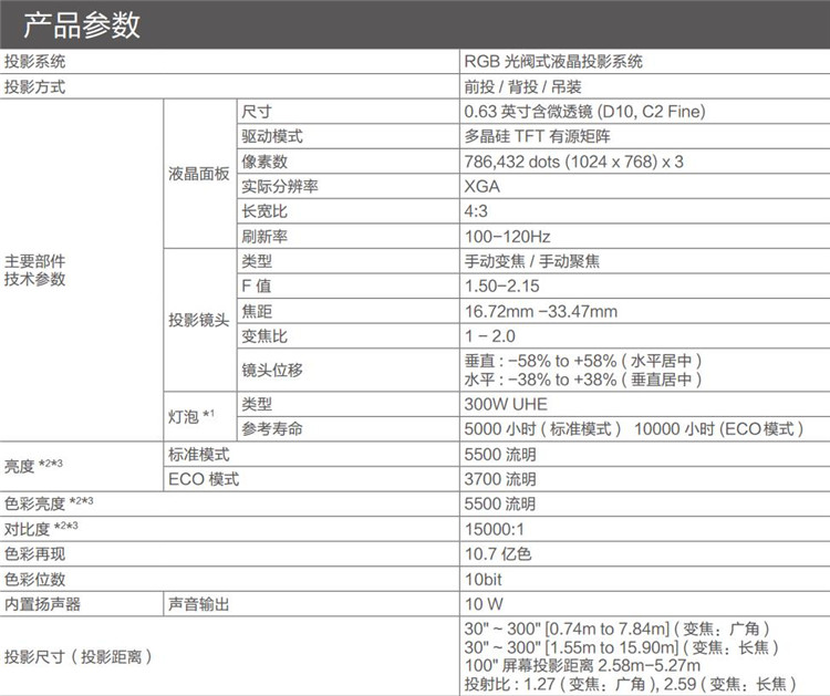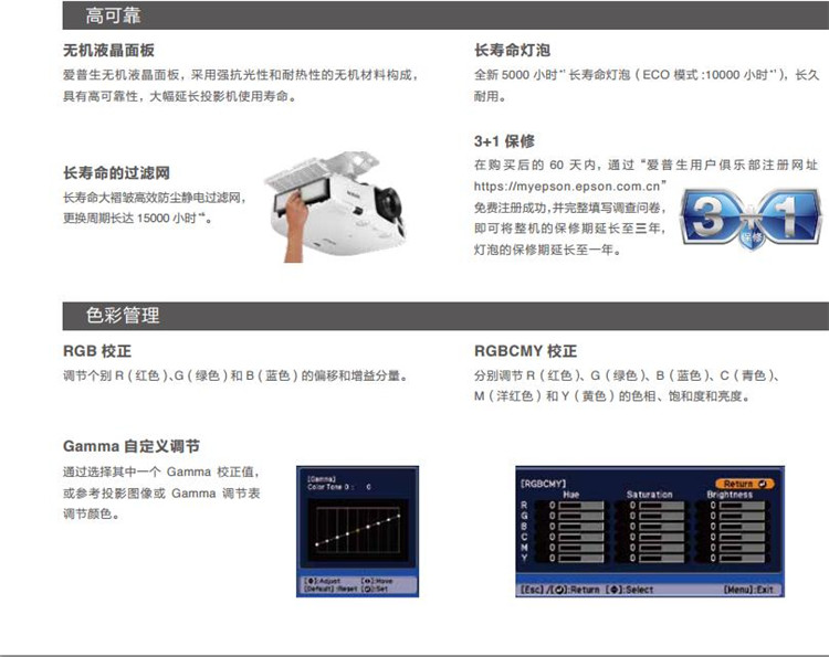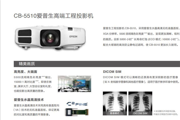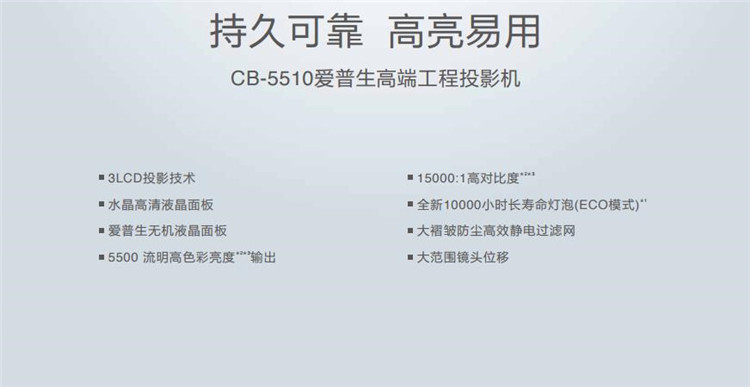 商品名称:爱普生(EPSON)CB-5510 商务教育工程投影机(5500流明 镜头位移 防尘静电过滤网 双HDMI CEC)